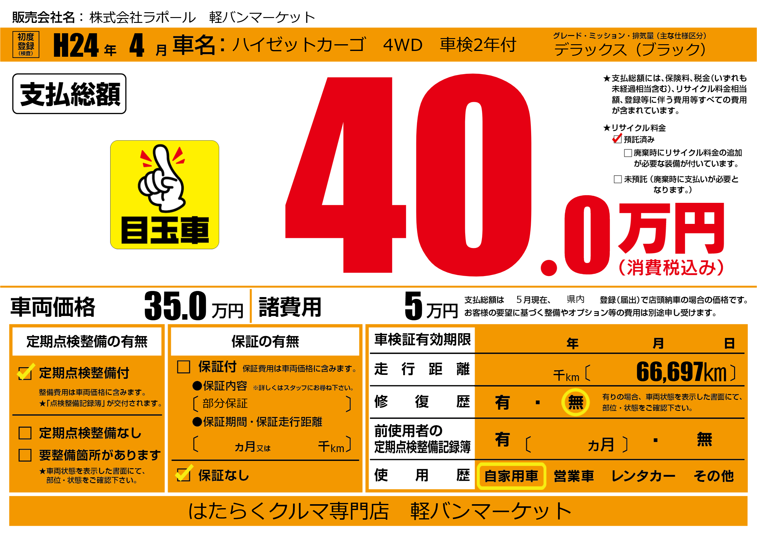 株式会社ラポール 軽バンマーケットの展示車