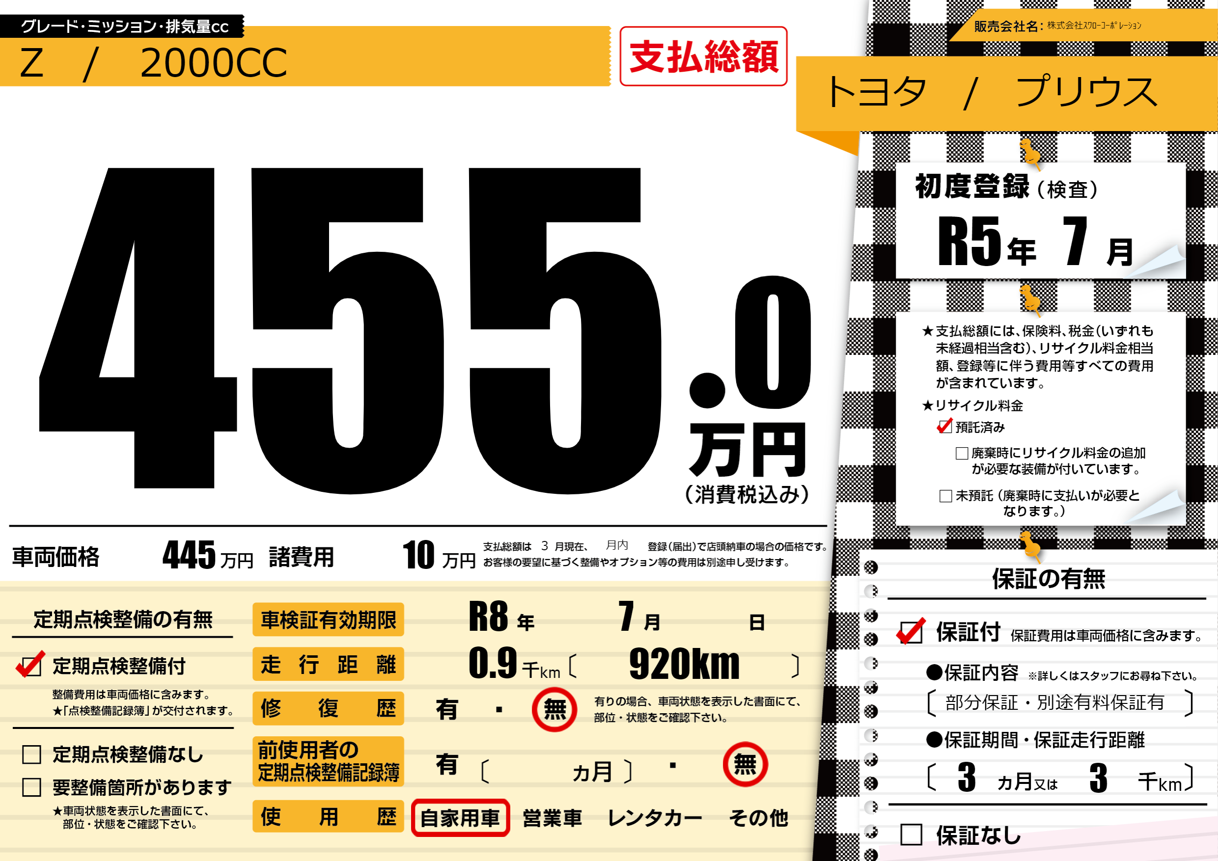 | 車名 | トヨタ / プリウス | グレード ミッション 排気量 |