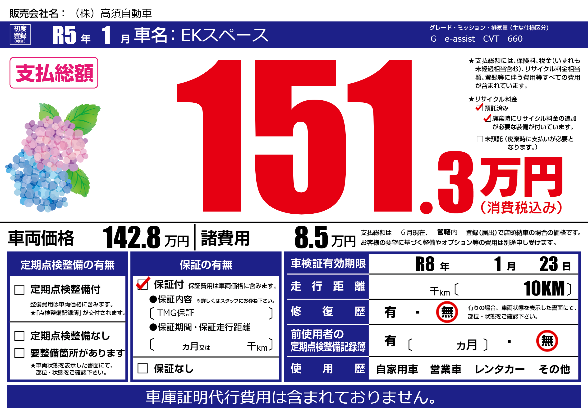 保証付き 保証内容(TMG保証) ---ヶ月または()千kmまで |