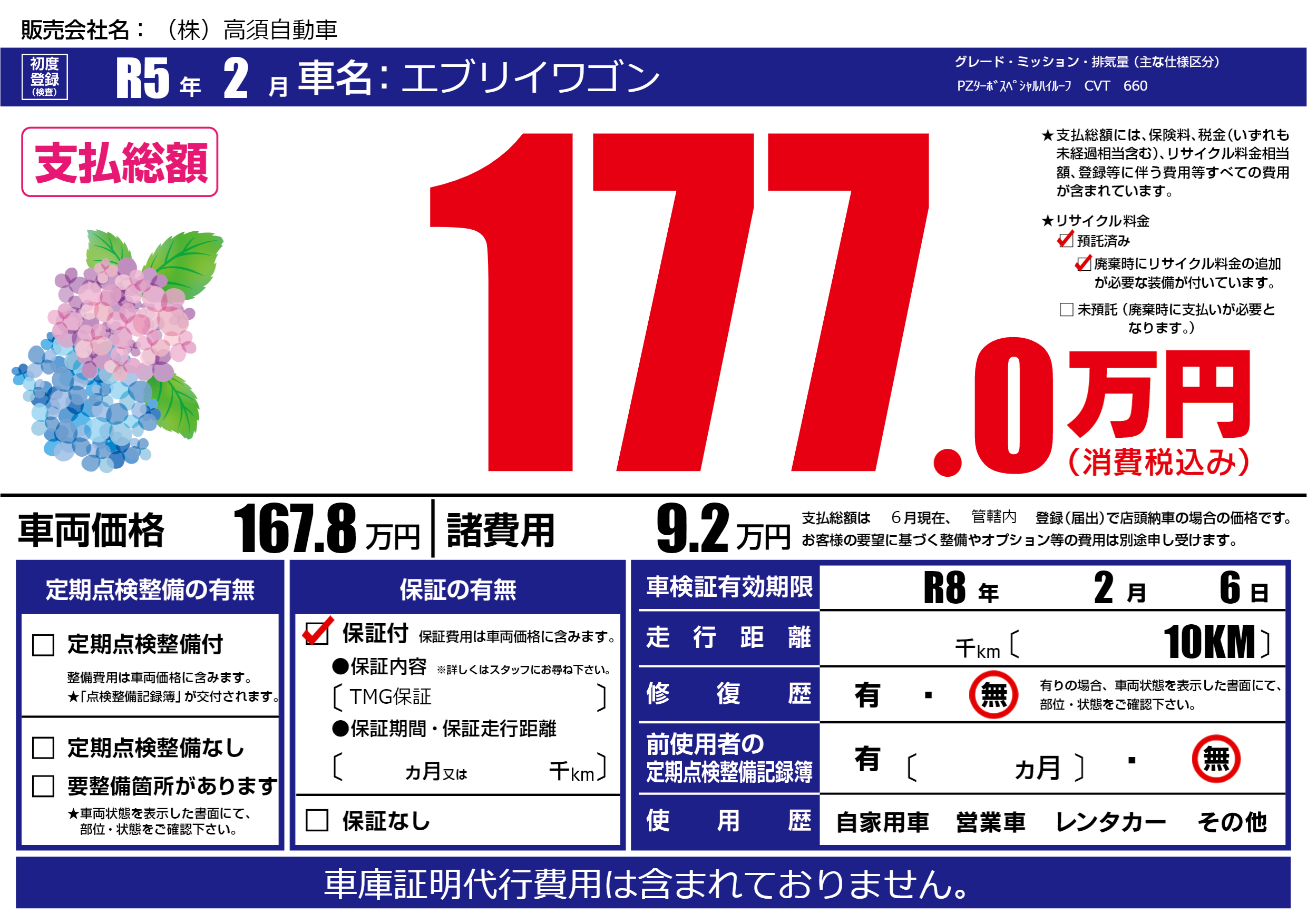 なし | 車検制限 | R8年2月6月 |
