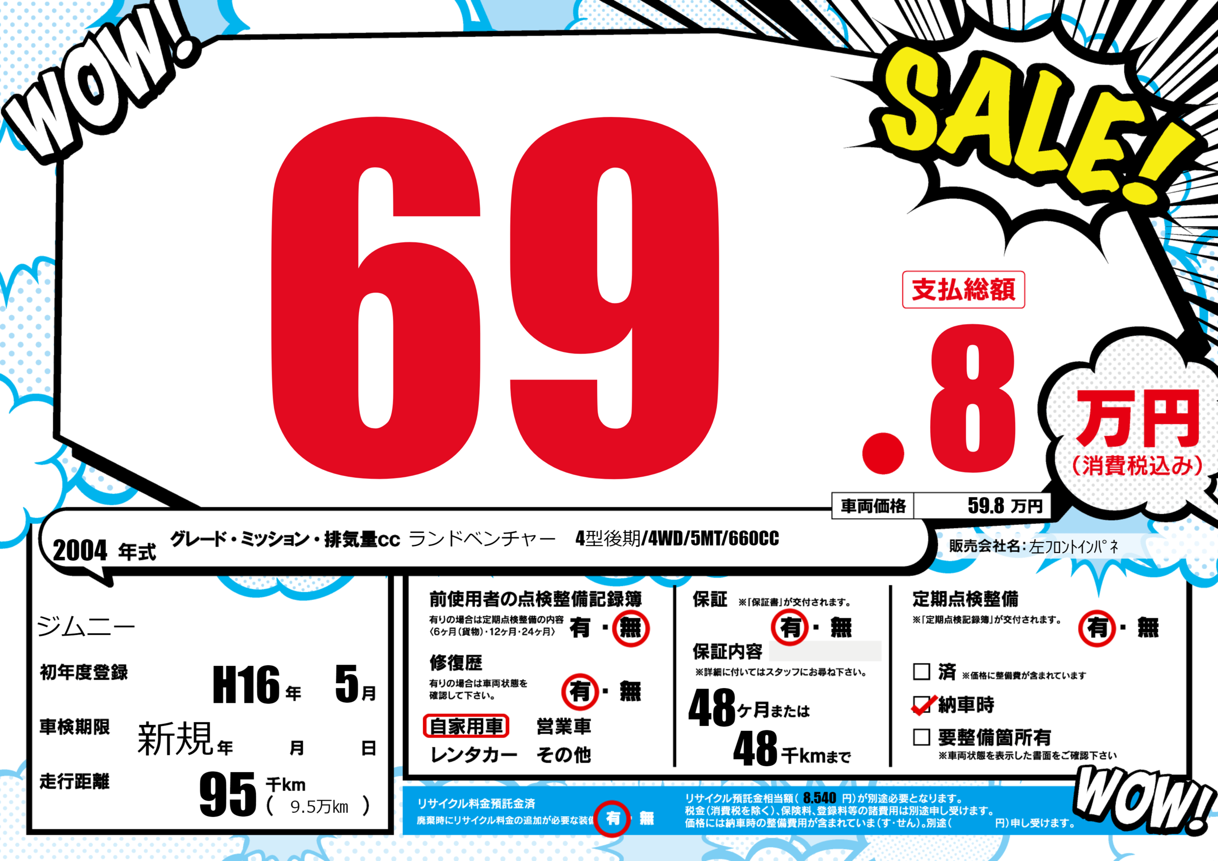 | 走行キロ | 9.5万km | 初年度登録 | H16年5月 |