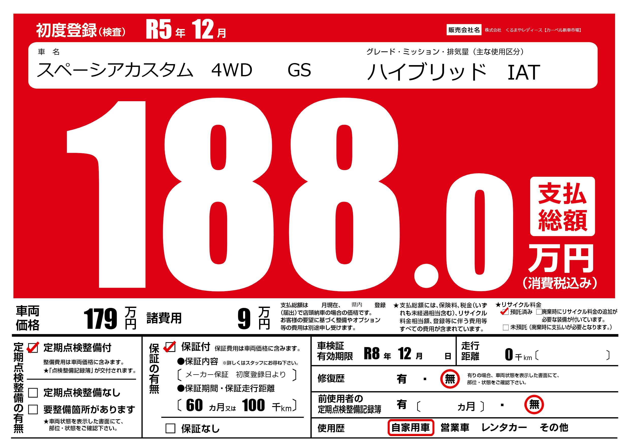 | 走行キロ | - | 初年度登録 | R5年12月 |