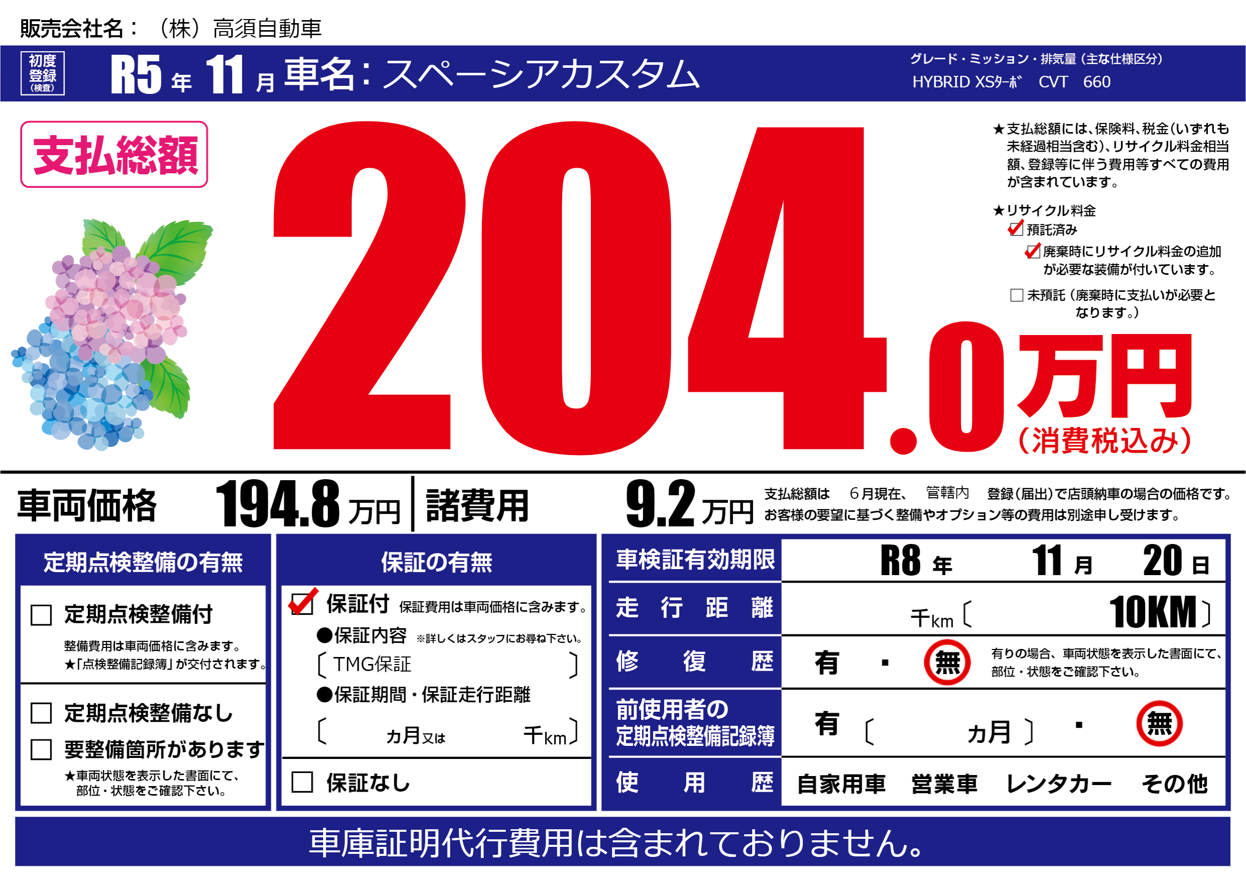 保証付き 保証内容(TMG保証) ---ヶ月または()千kmまで |