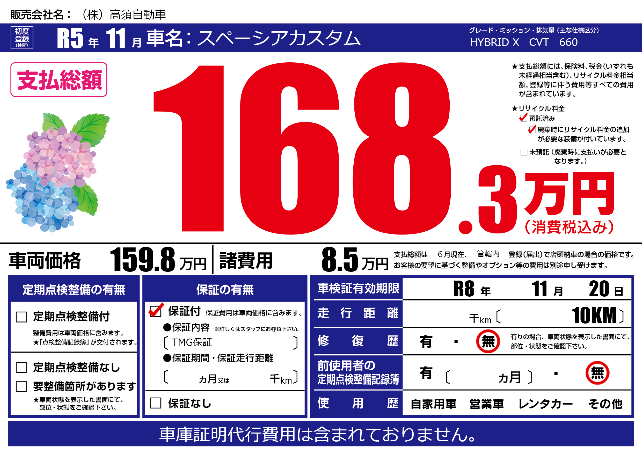 保証付き 保証内容(TMG保証) ---ヶ月または()千kmまで |