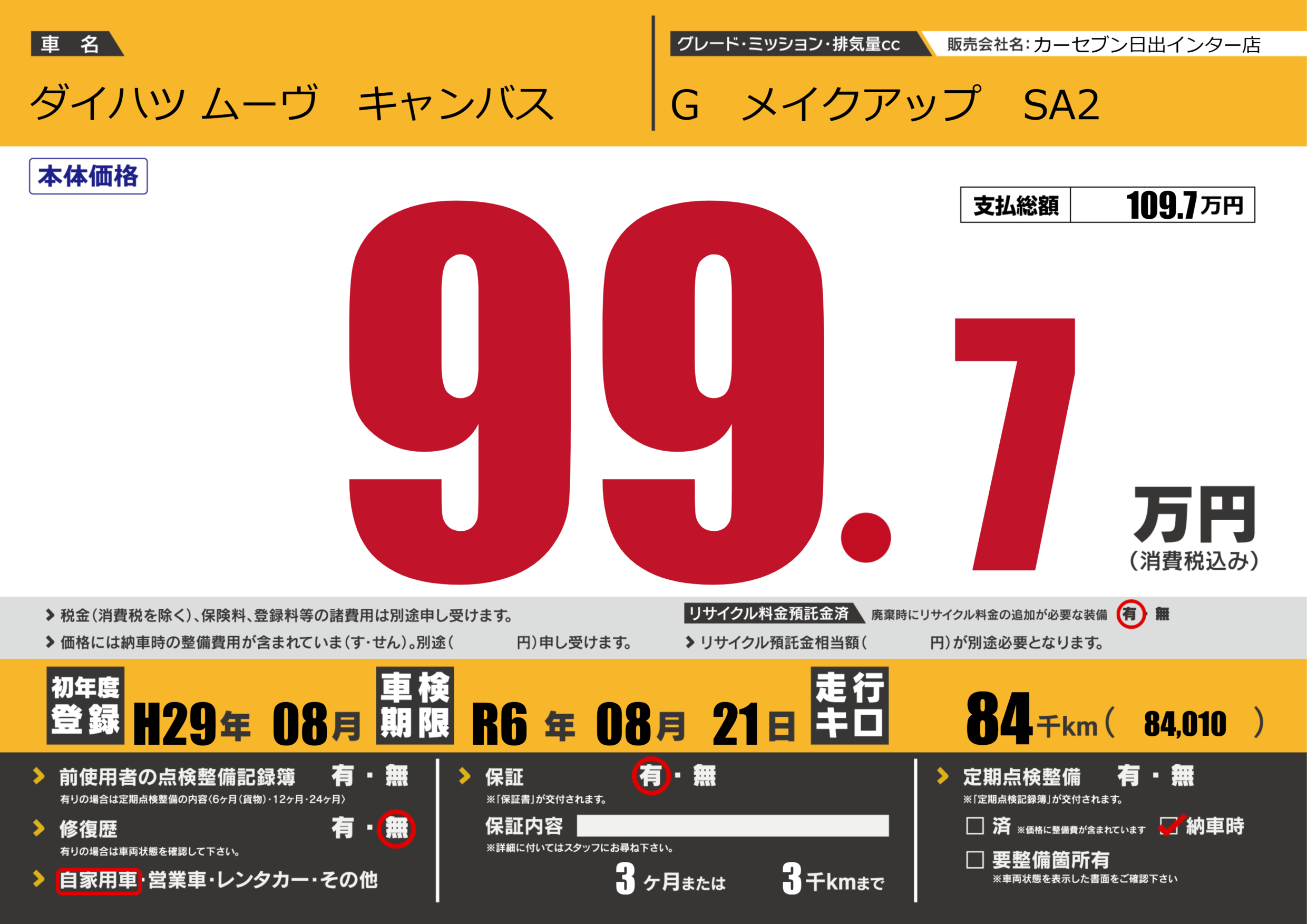 | 定期点検整備 | 納車時あり | ||