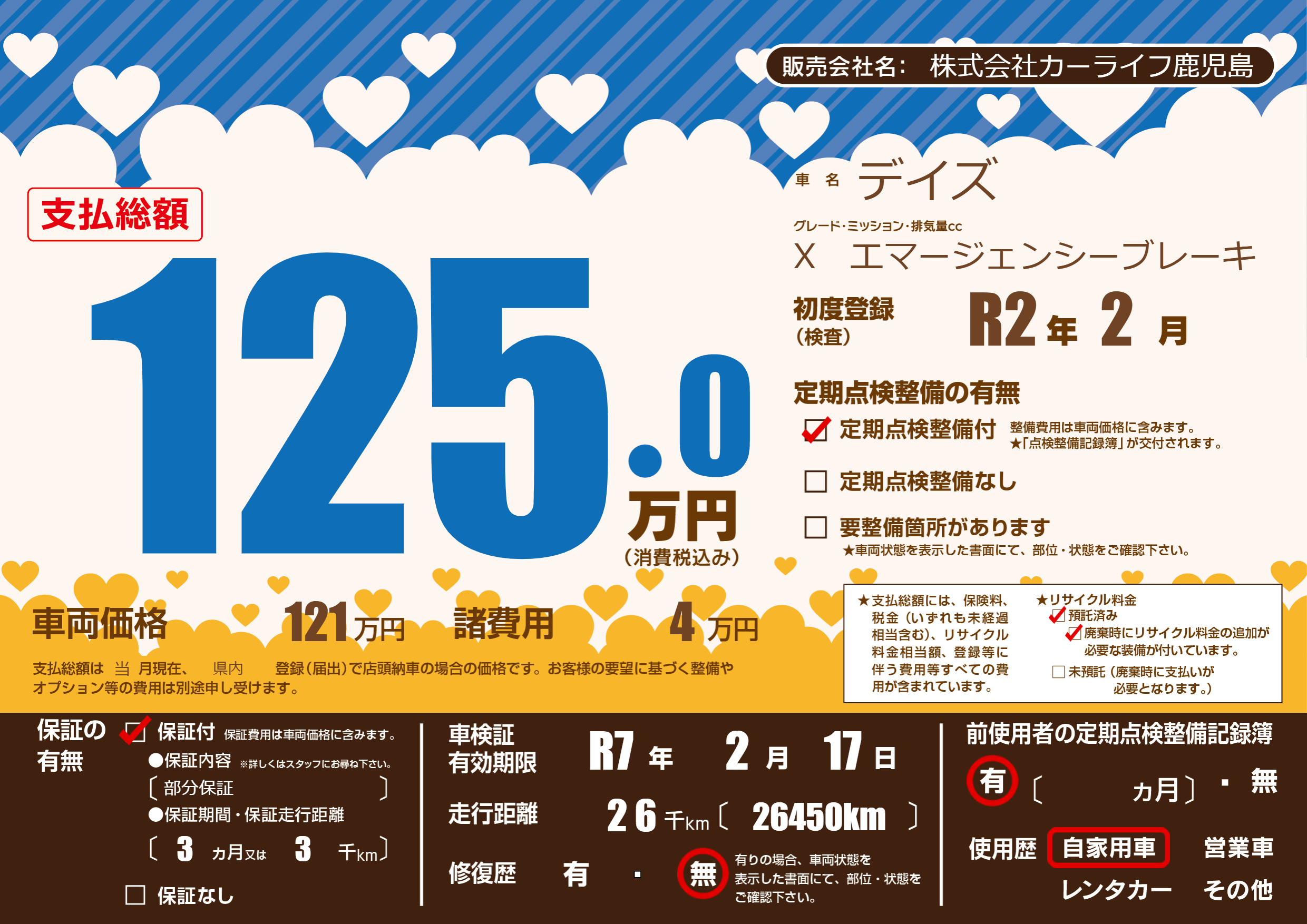 | 定期点検整備 | 定期点検整備あり | ||