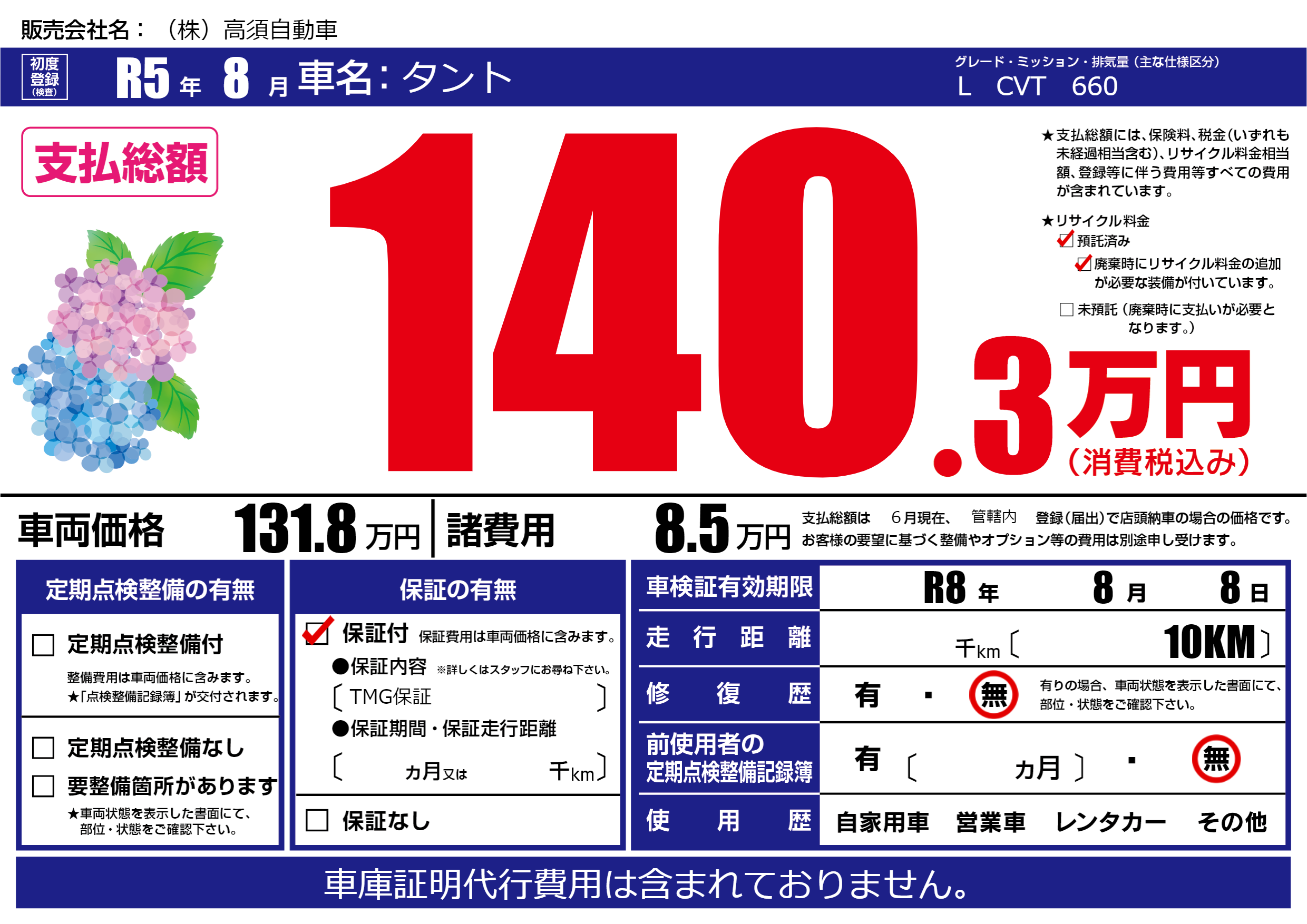 車検制限 R8年 8月 8日