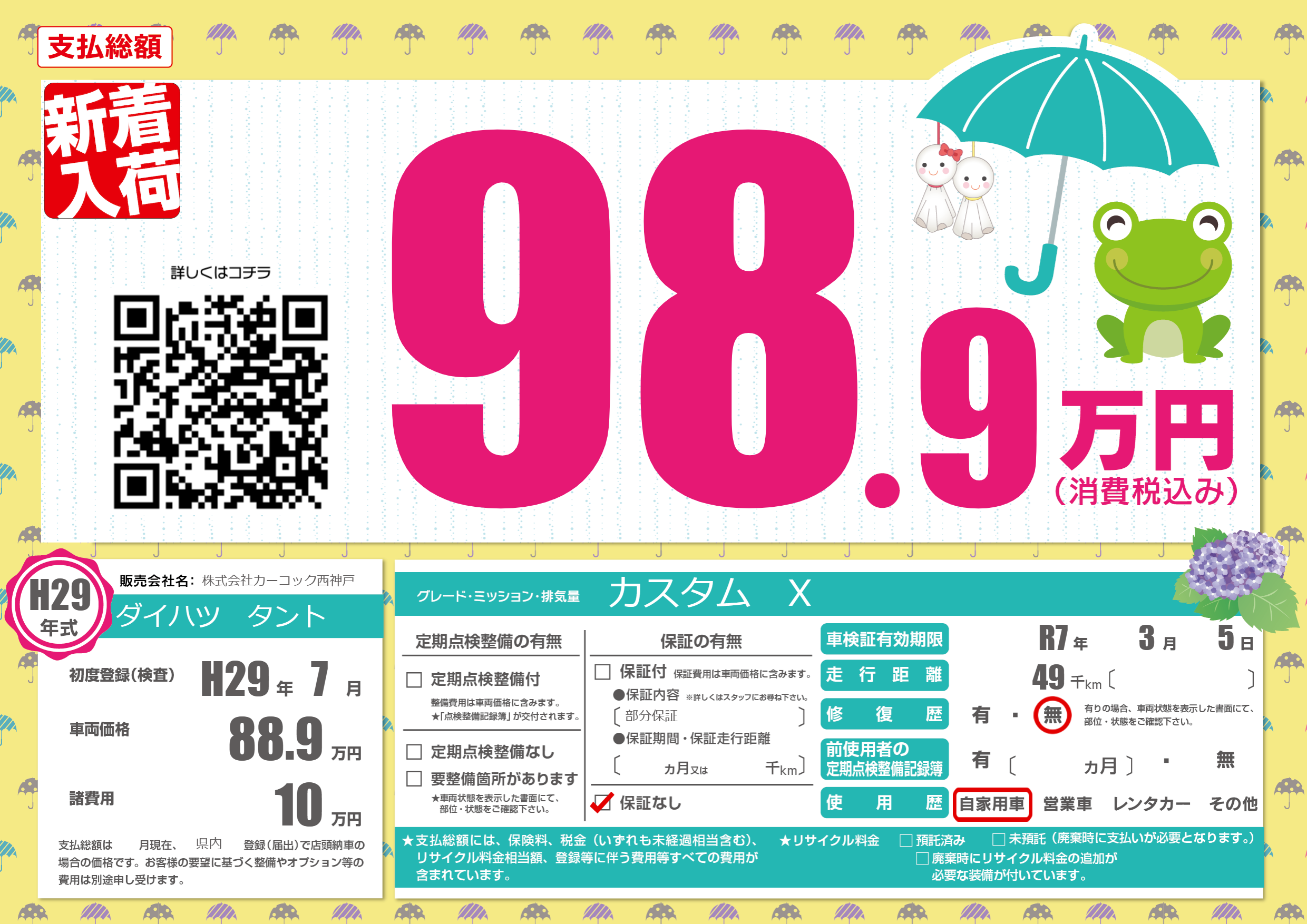 | 走行キロ | 4.9万km | 初年度登録 | H29年7月 |