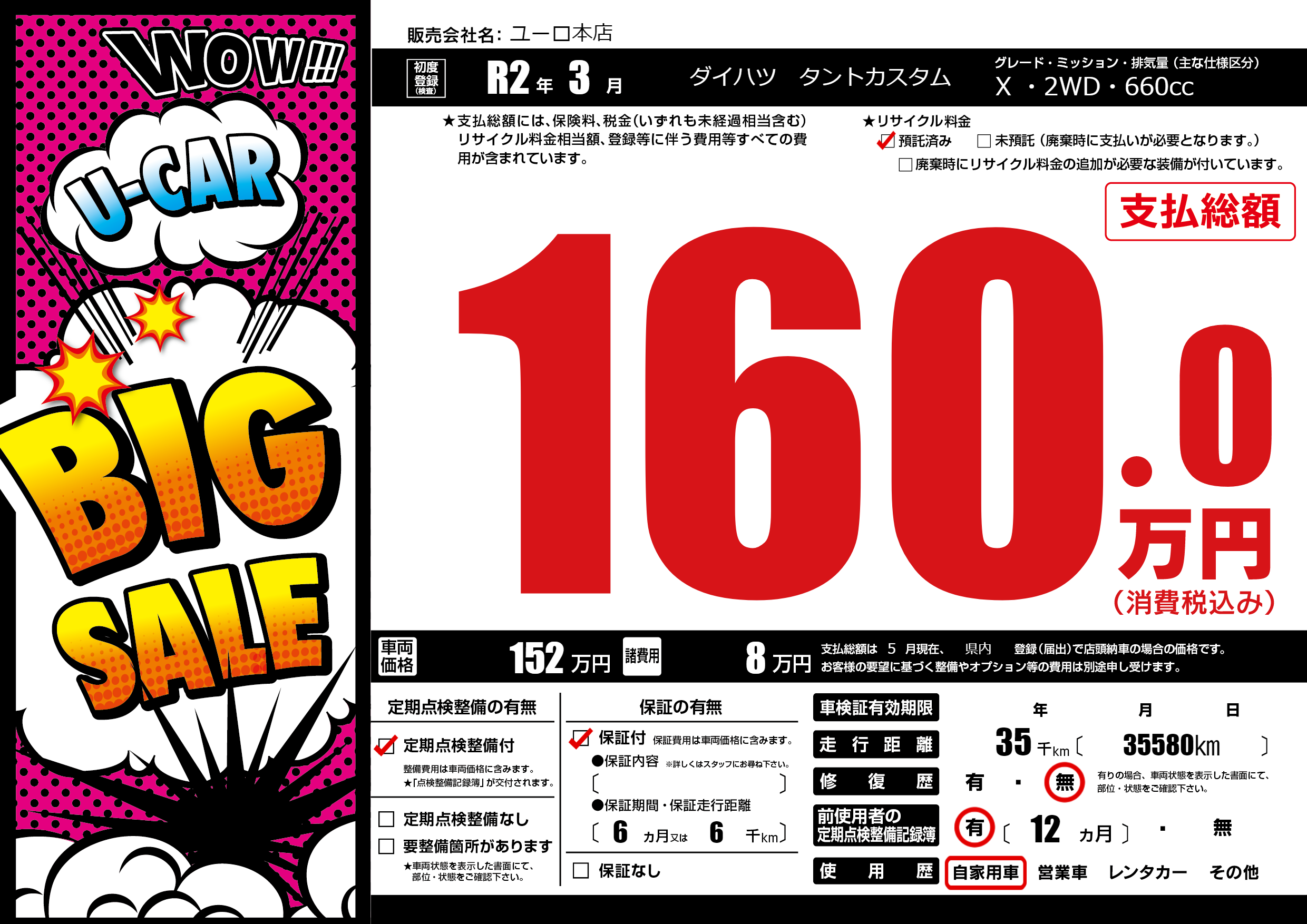 | 走行キロ | 3.5万km | 初年度登録 | R2年3月 |