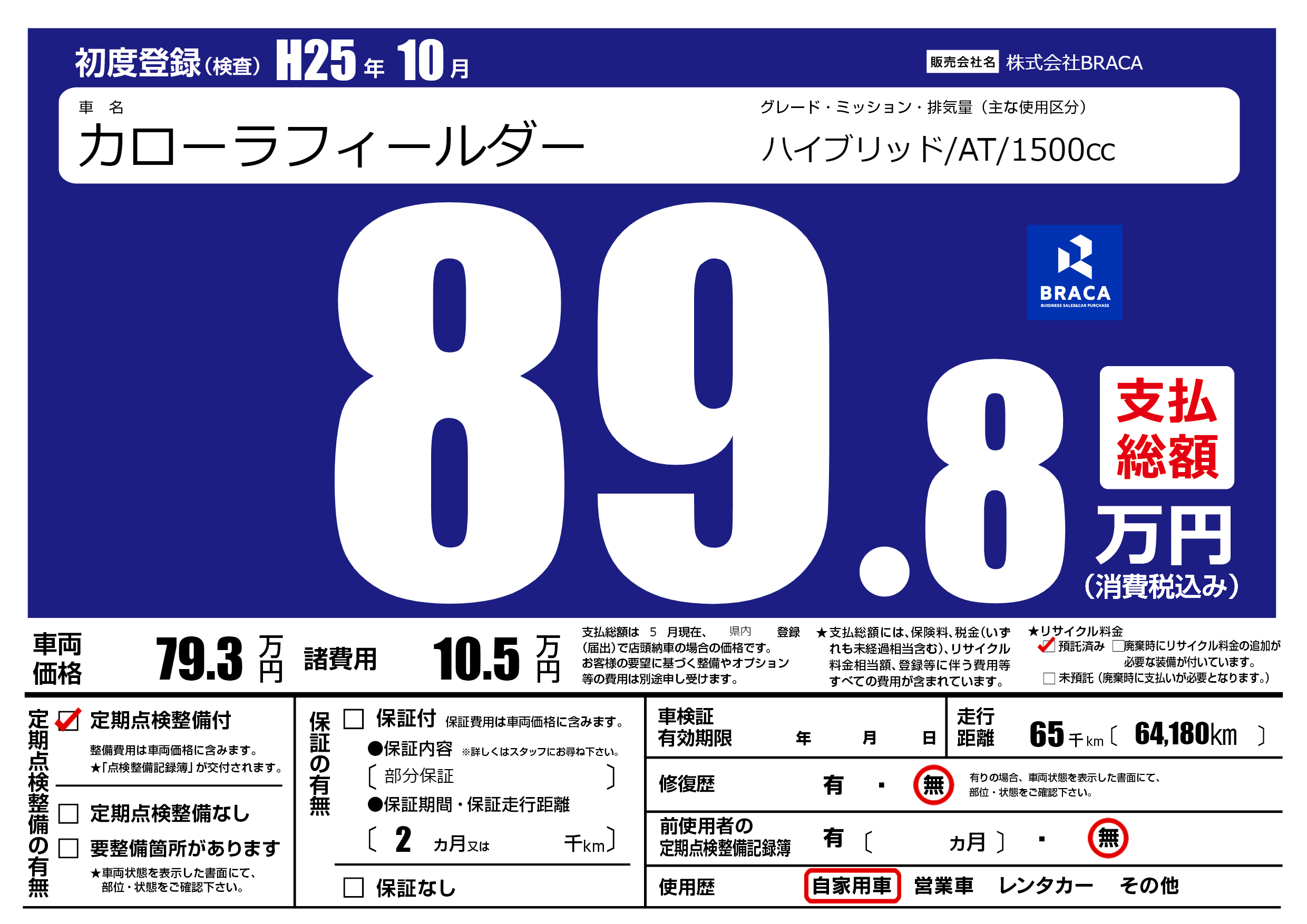 | 定期点検整備 | 定期点検整備あり | ||