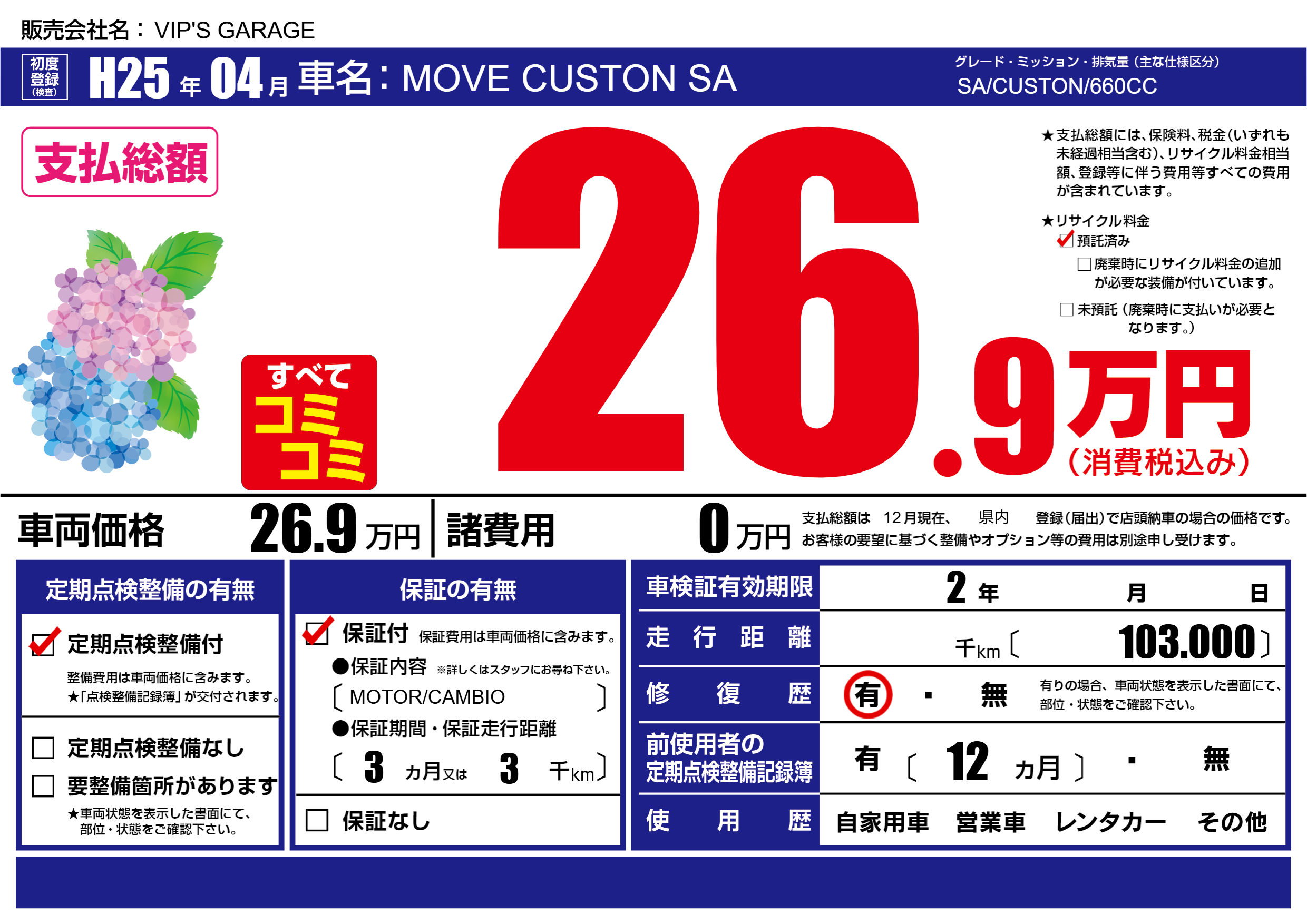 定期点検整備 | 定期点検整備あり |