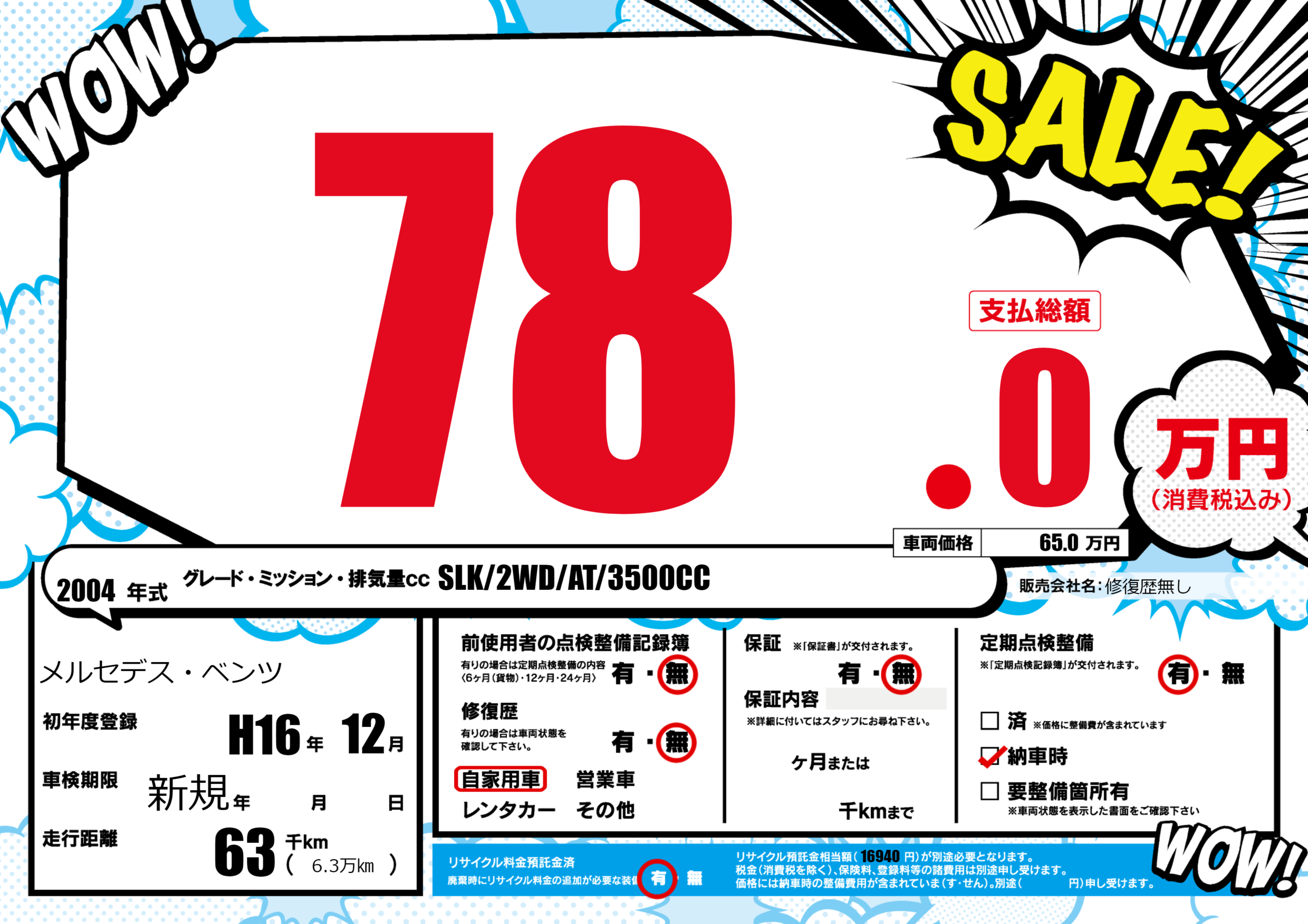 なし | 車検制限 | 新規年---月---月 |