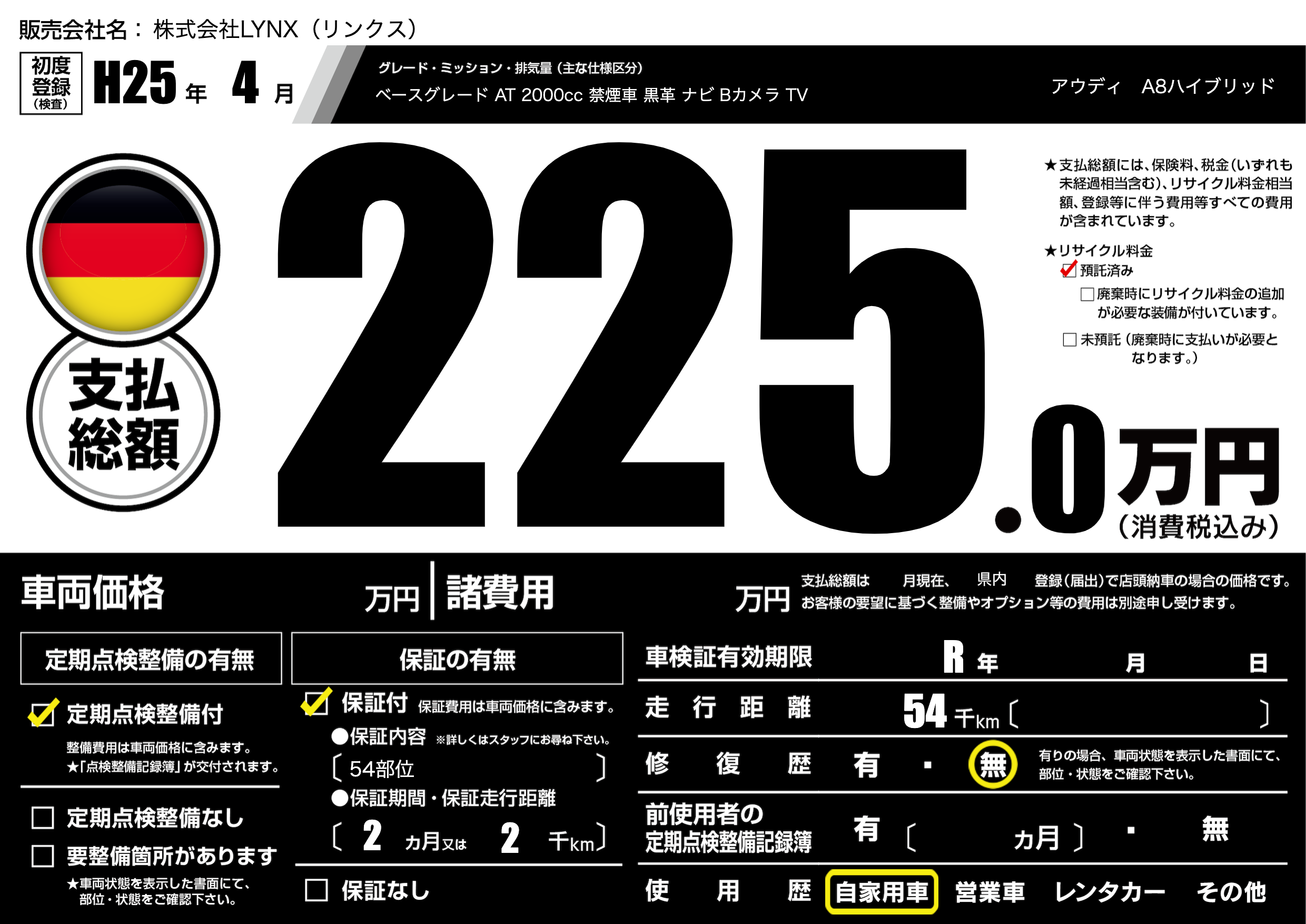 なし | 車検制限 | R年---月---月 |