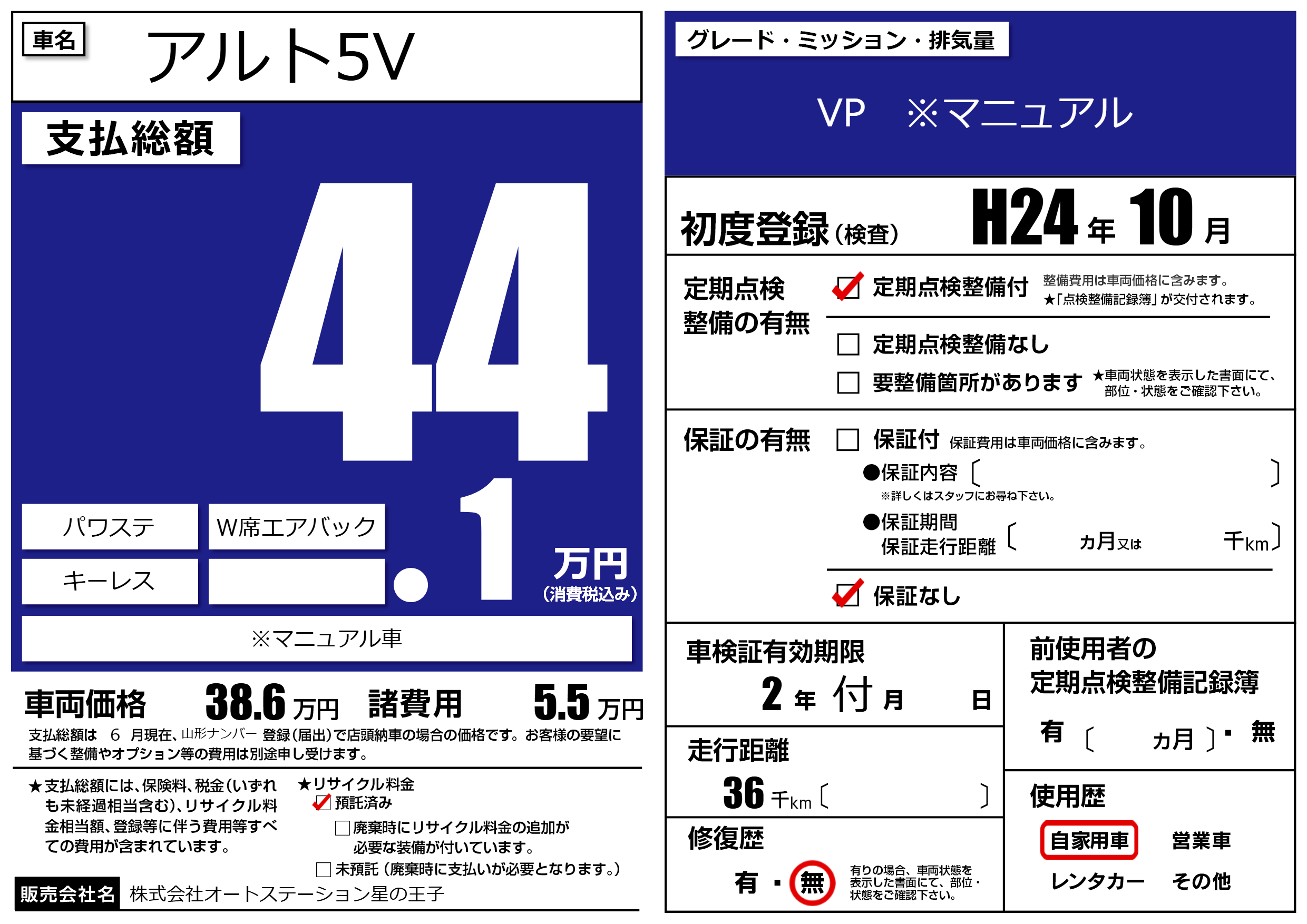 なし | 車検制限 | 2年付月---月 |