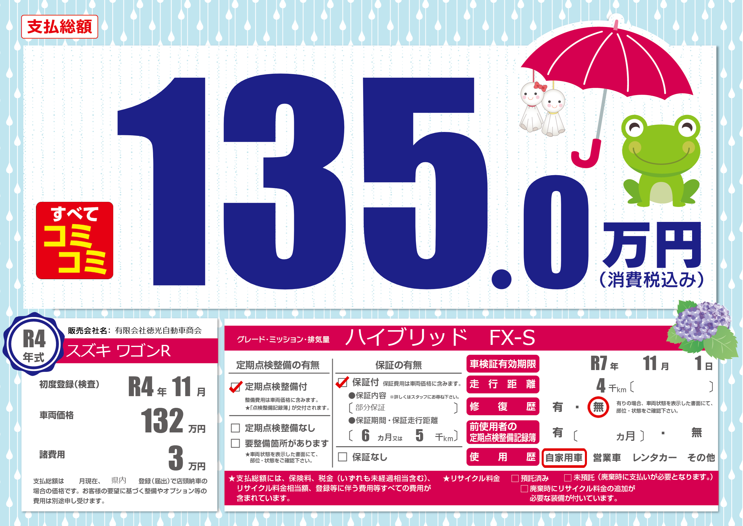 なし | 車検制限 | R7年11月1月 |