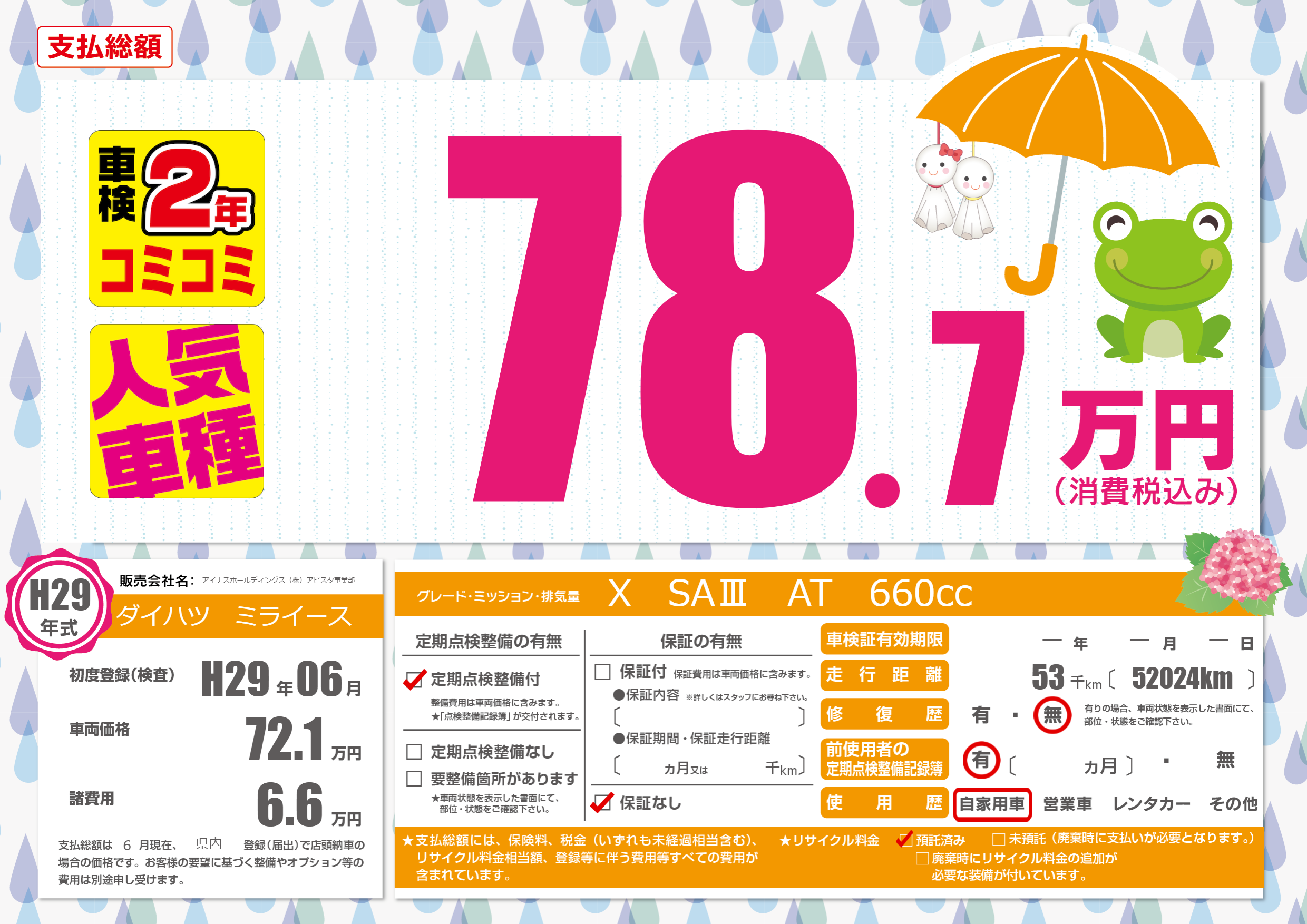 | 走行キロ | 5.3万km | 初年度登録 | H29年06月 |