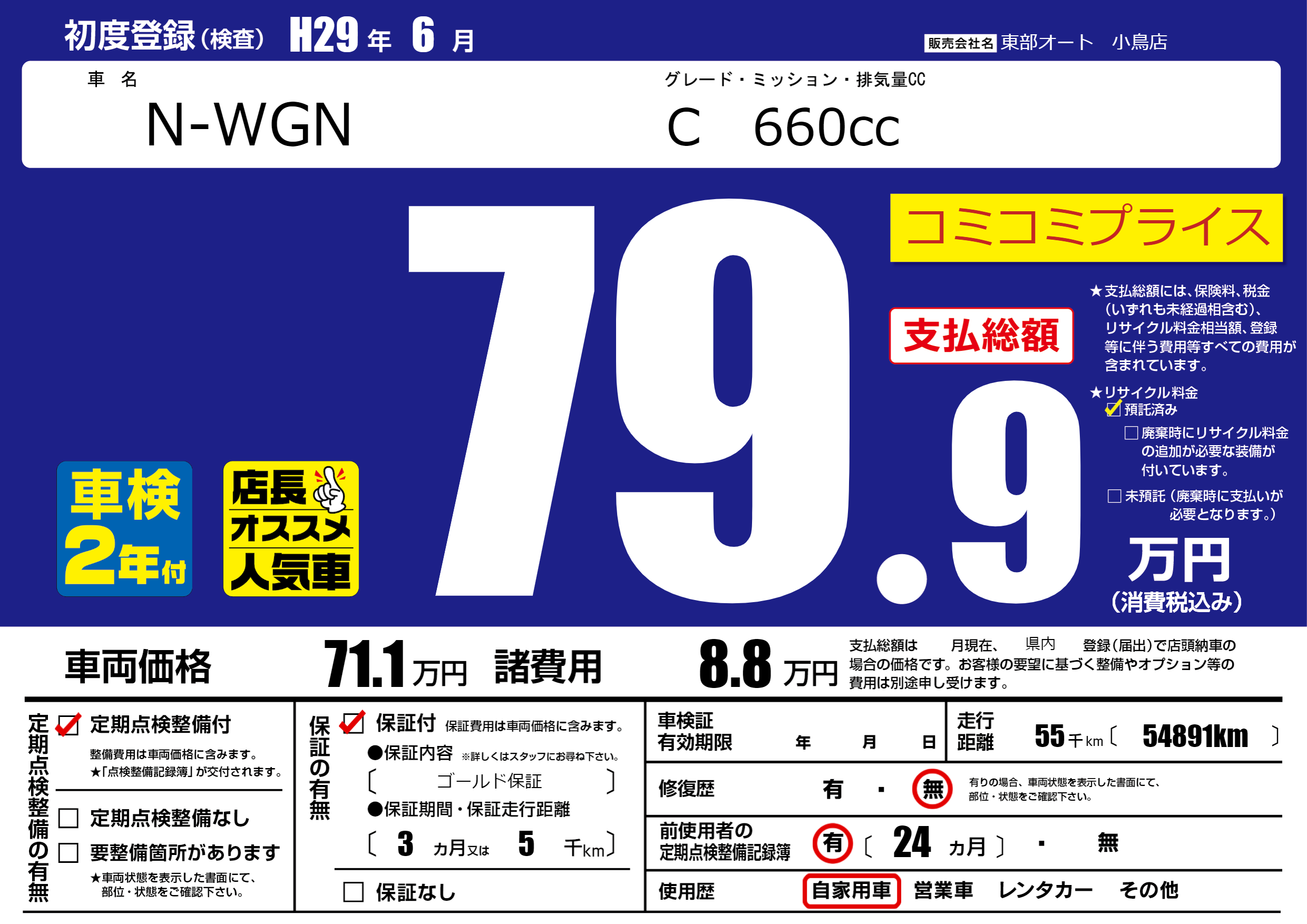 初年度登録 H29年6月