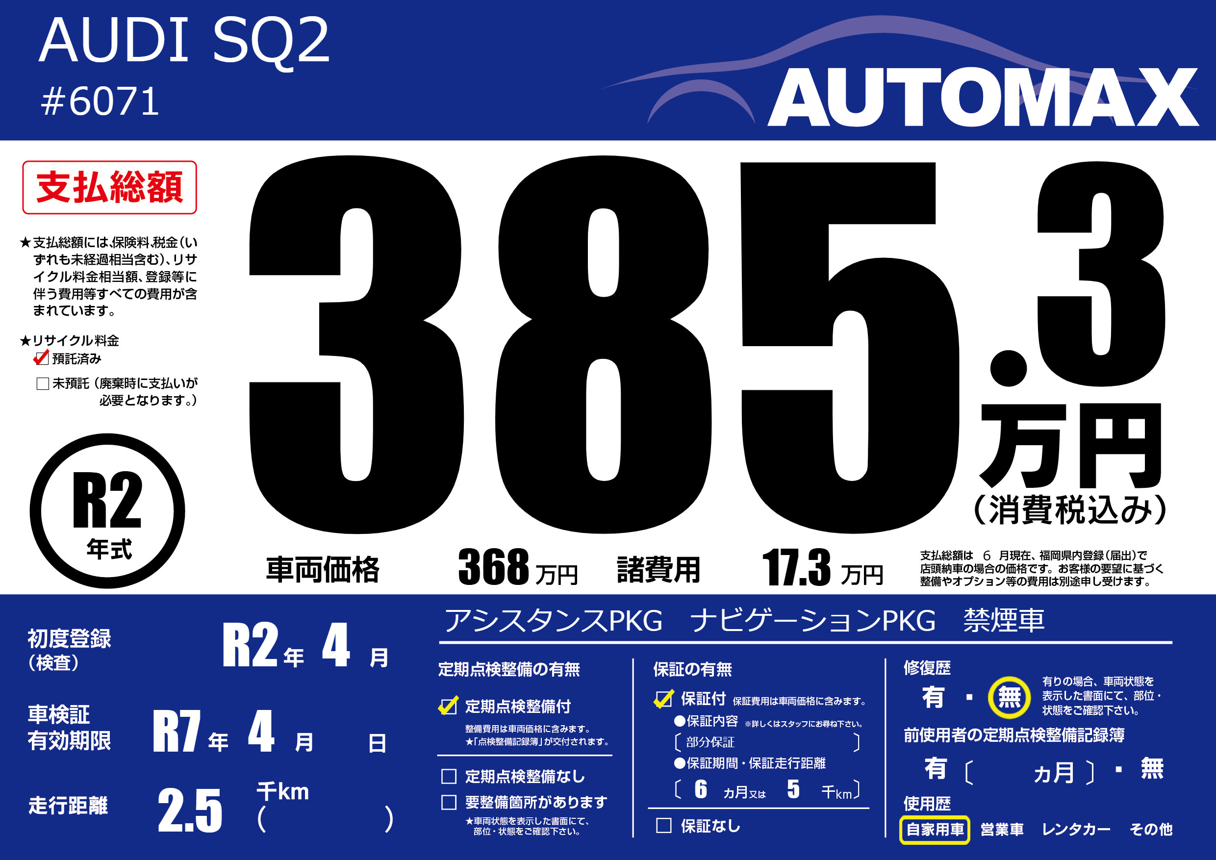 | 車名 | AUDI SQ2 | グレード ミッション 排気量 |