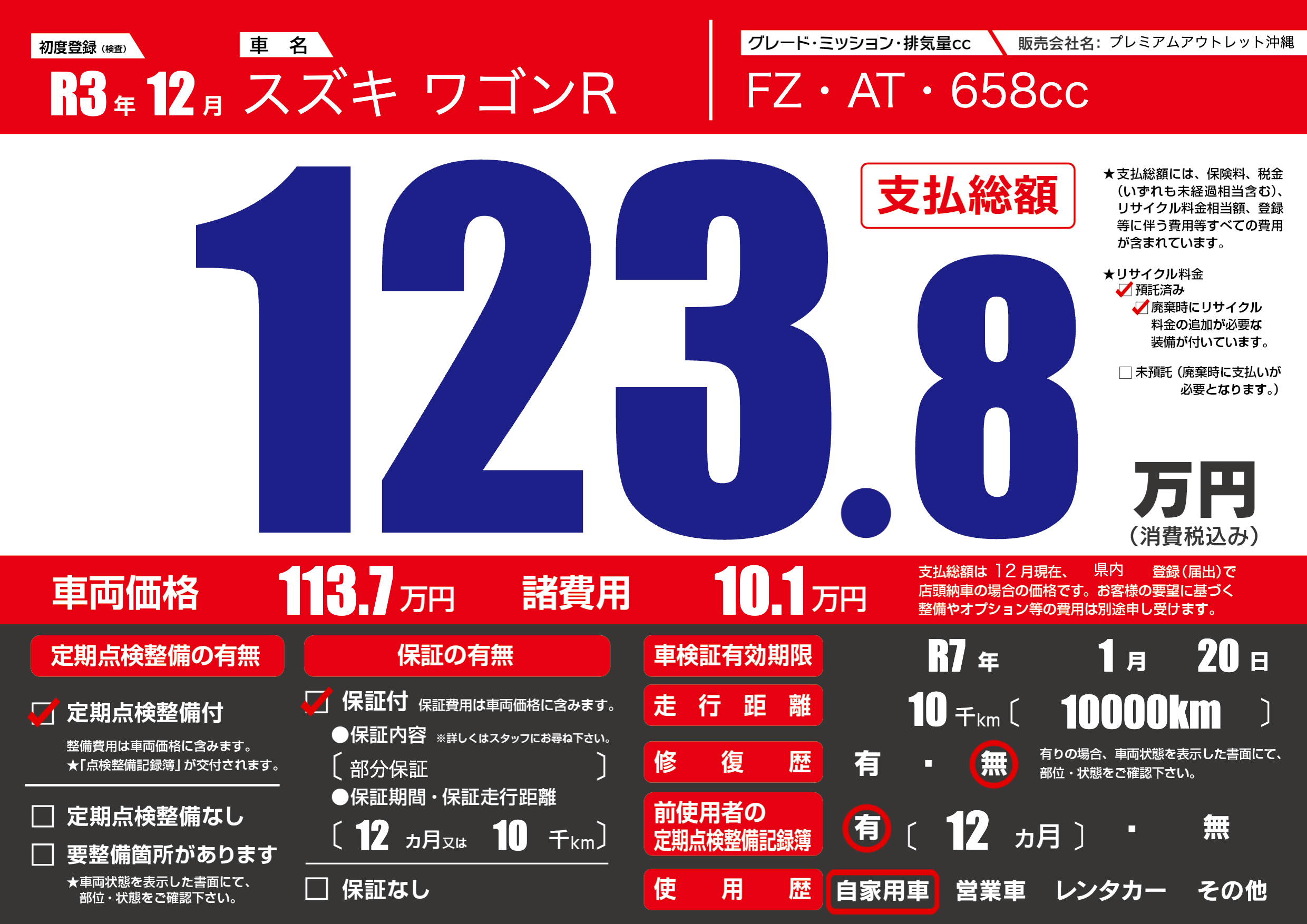 | 走行キロ | 1万km | 初年度登録 | R3年12月 |