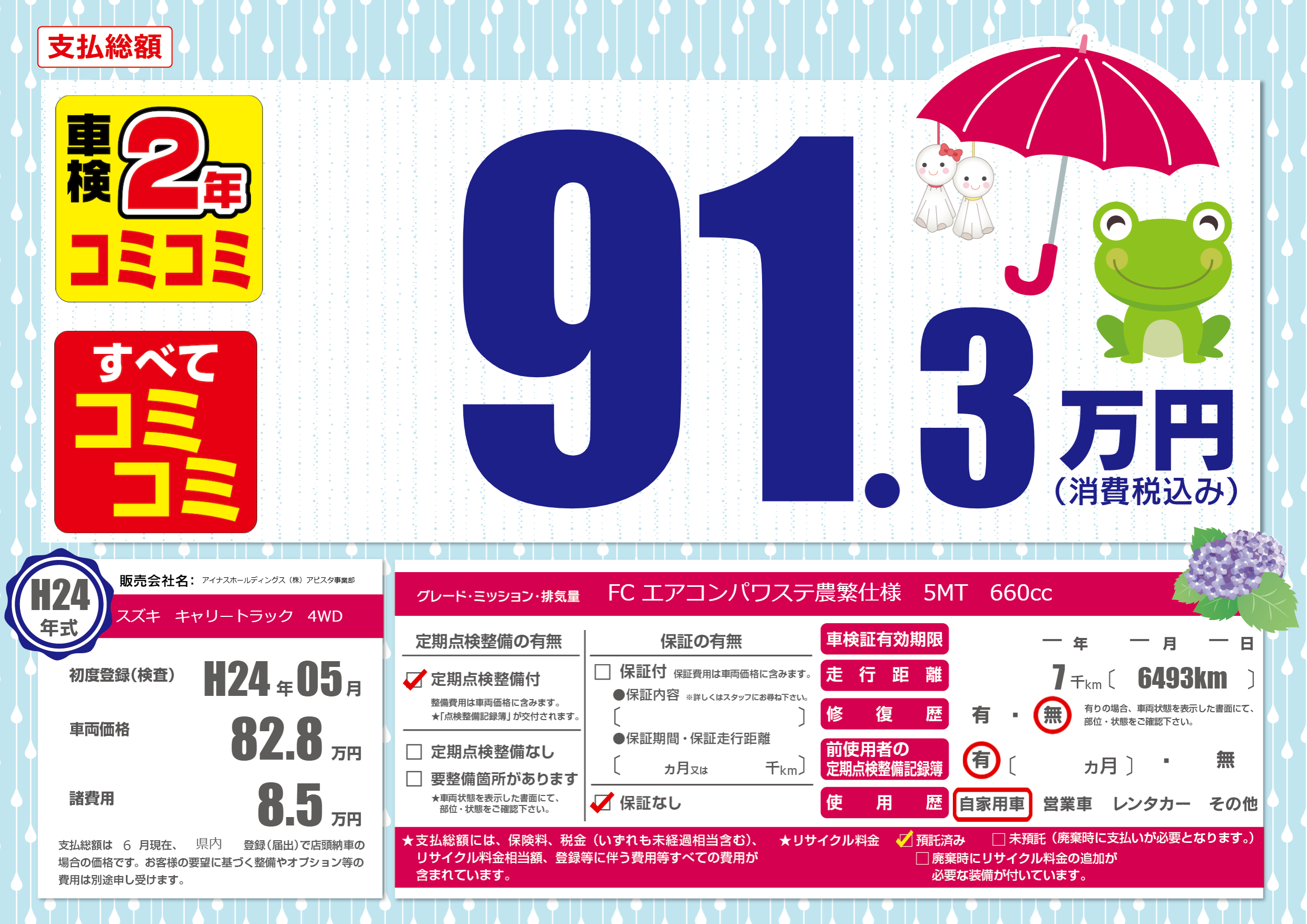 | 車名 | スズキ キャリートラック 4WD | グレード ミッション 排気量 |