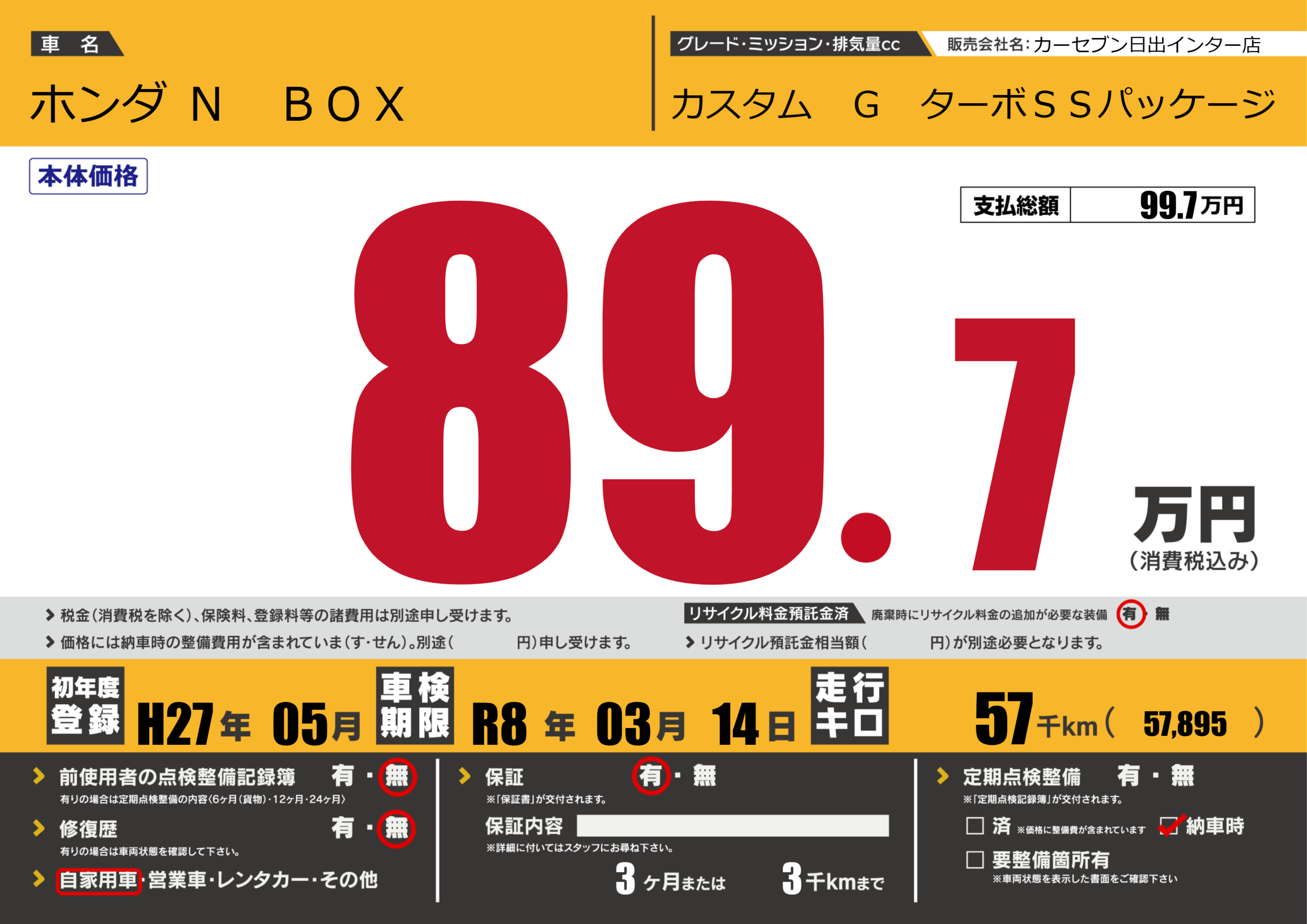 保証付き 保証内容(---) 3ヶ月または(3)千kmまで |