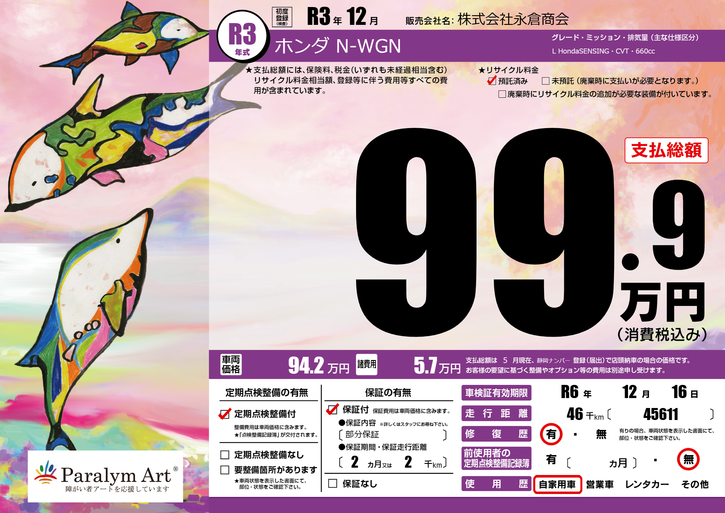 | 車名 | ホンダ N-WGN | グレード ミッション 排気量 |
