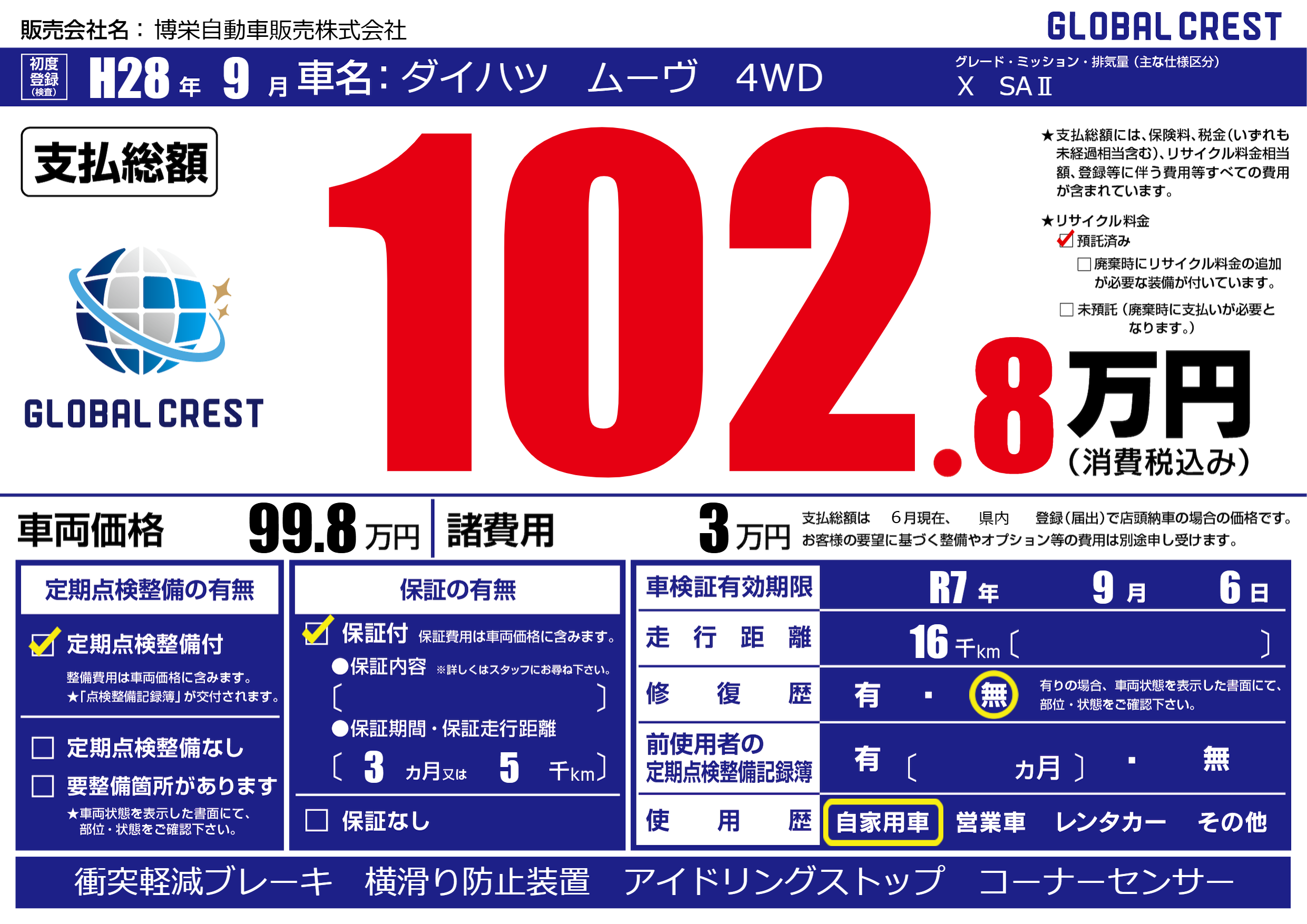 | 車検制限 | R7年 9月 6日 | ||