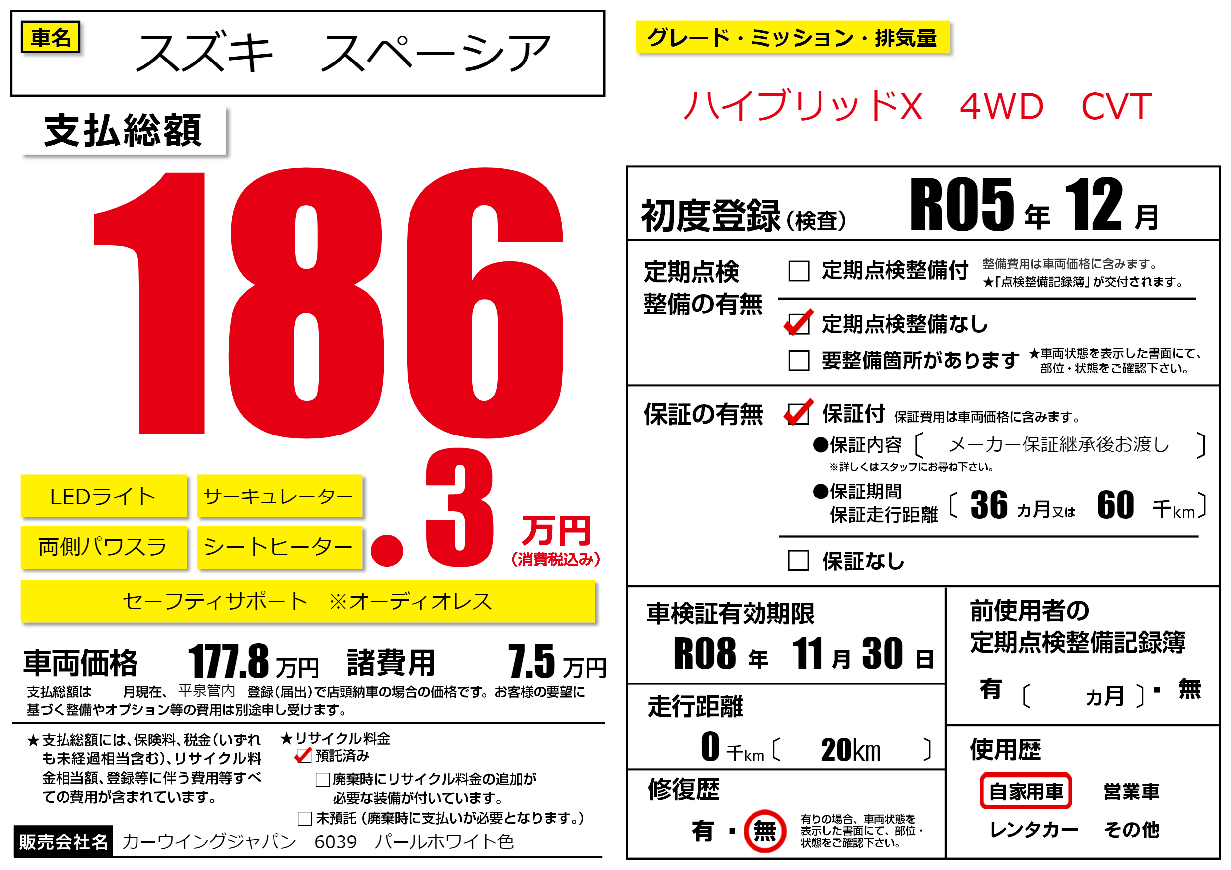 | 走行キロ | - | 初年度登録 | R05年12月 |
