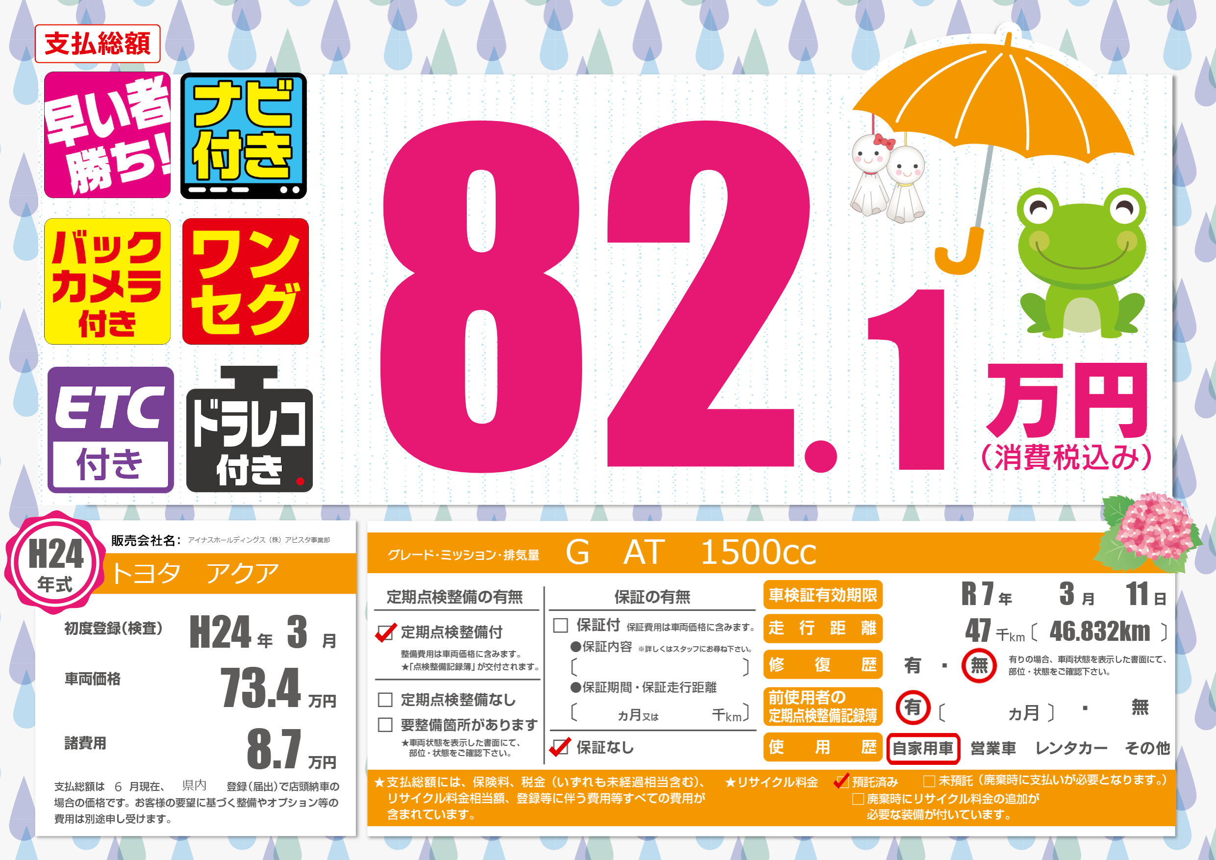 なし | 車検制限 | R 7年3月11月 |