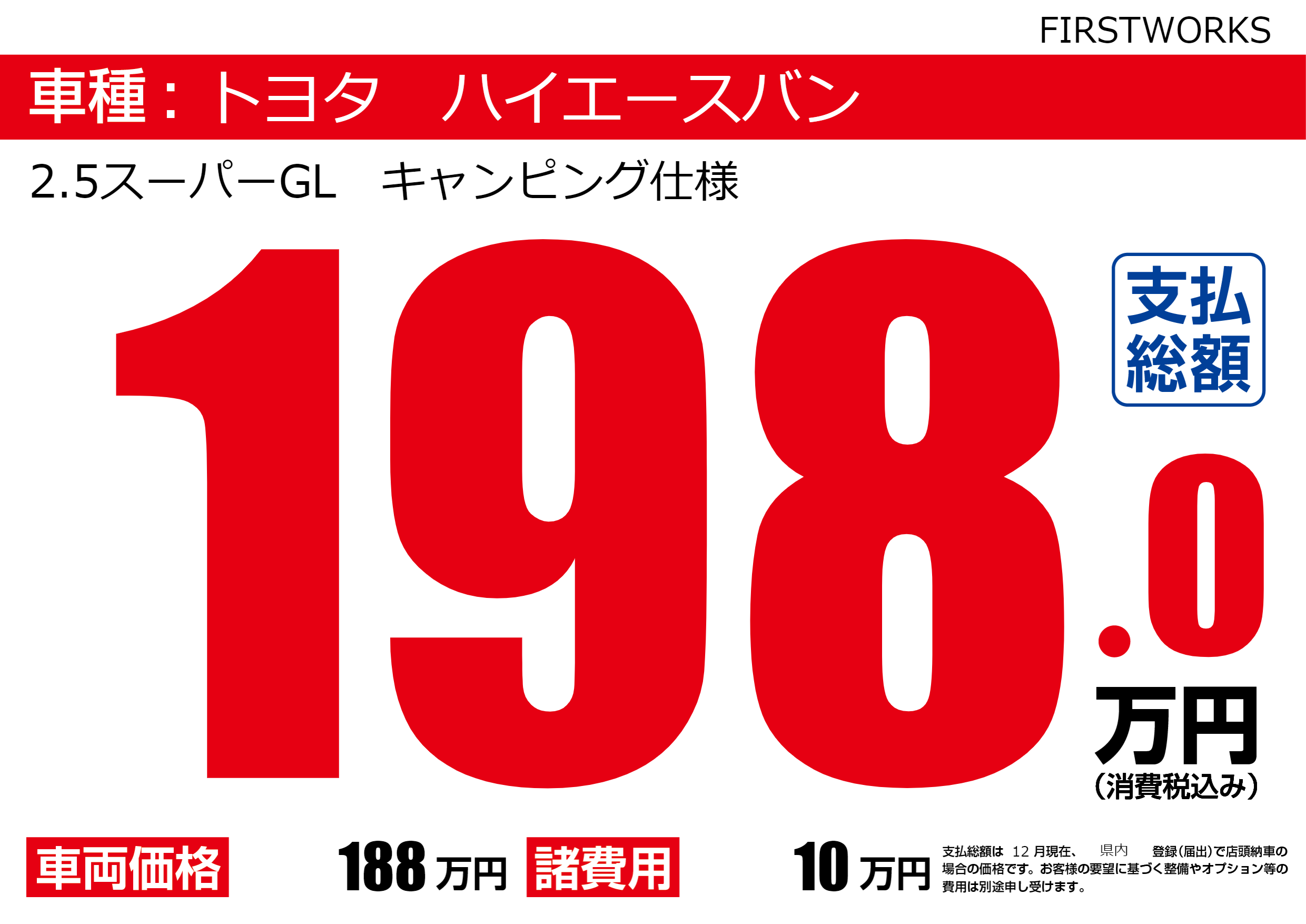 | 車名 | トヨタ ハイエースバン | グレード ミッション 排気量 |