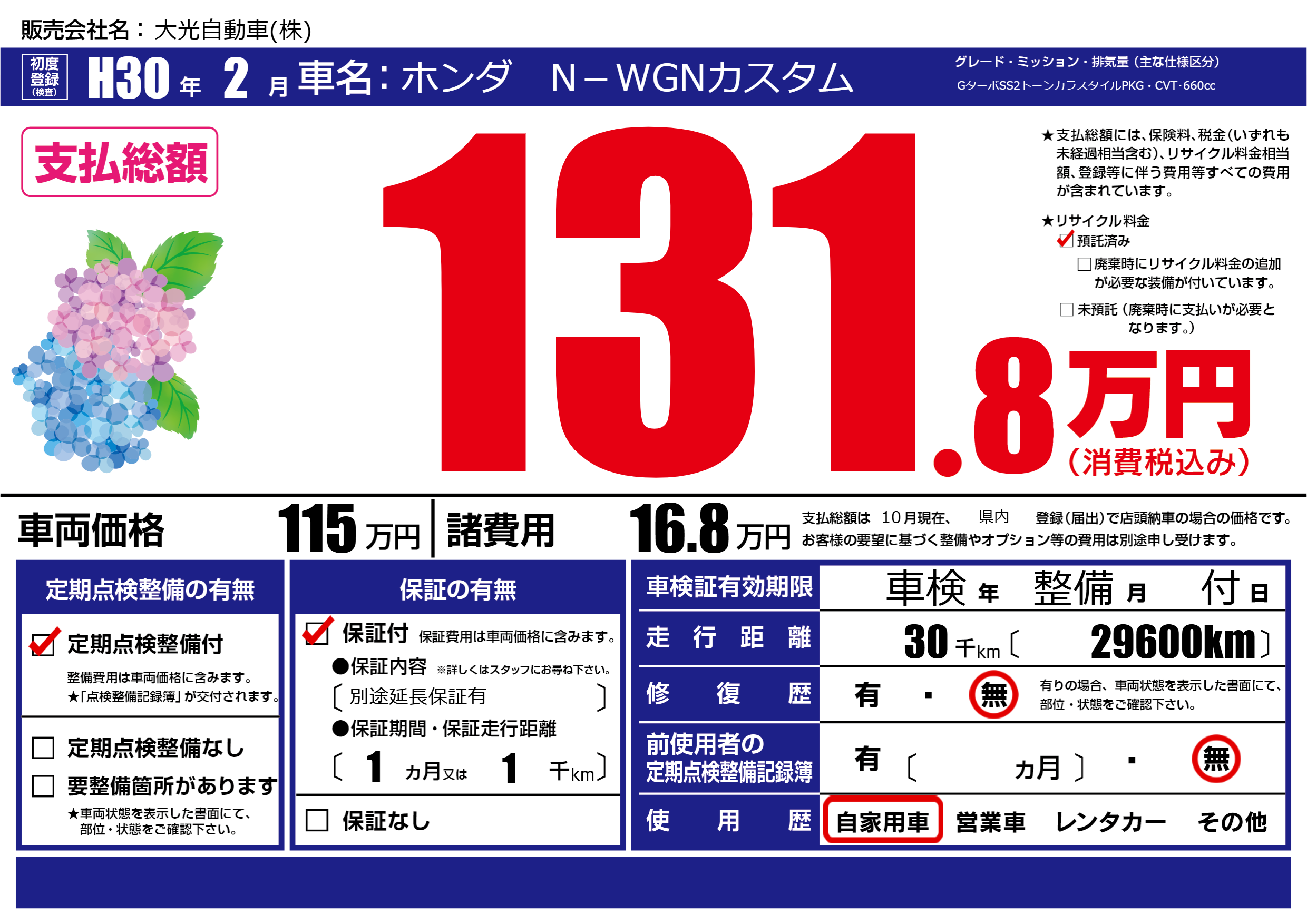 定期点検整備 | 定期点検整備あり |