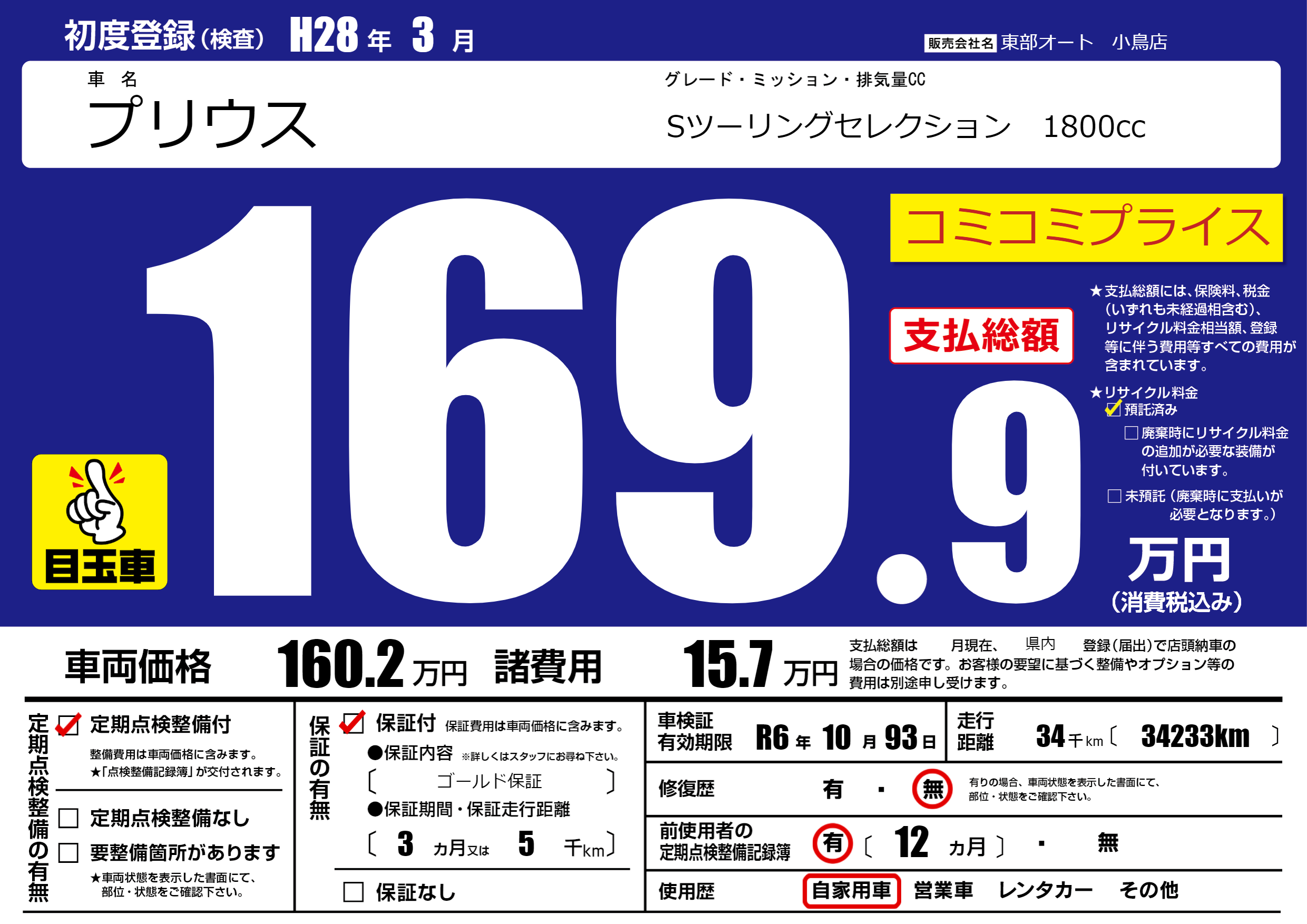 保証付き 保証内容( ゴールド保証) 3ヶ月または5千km |