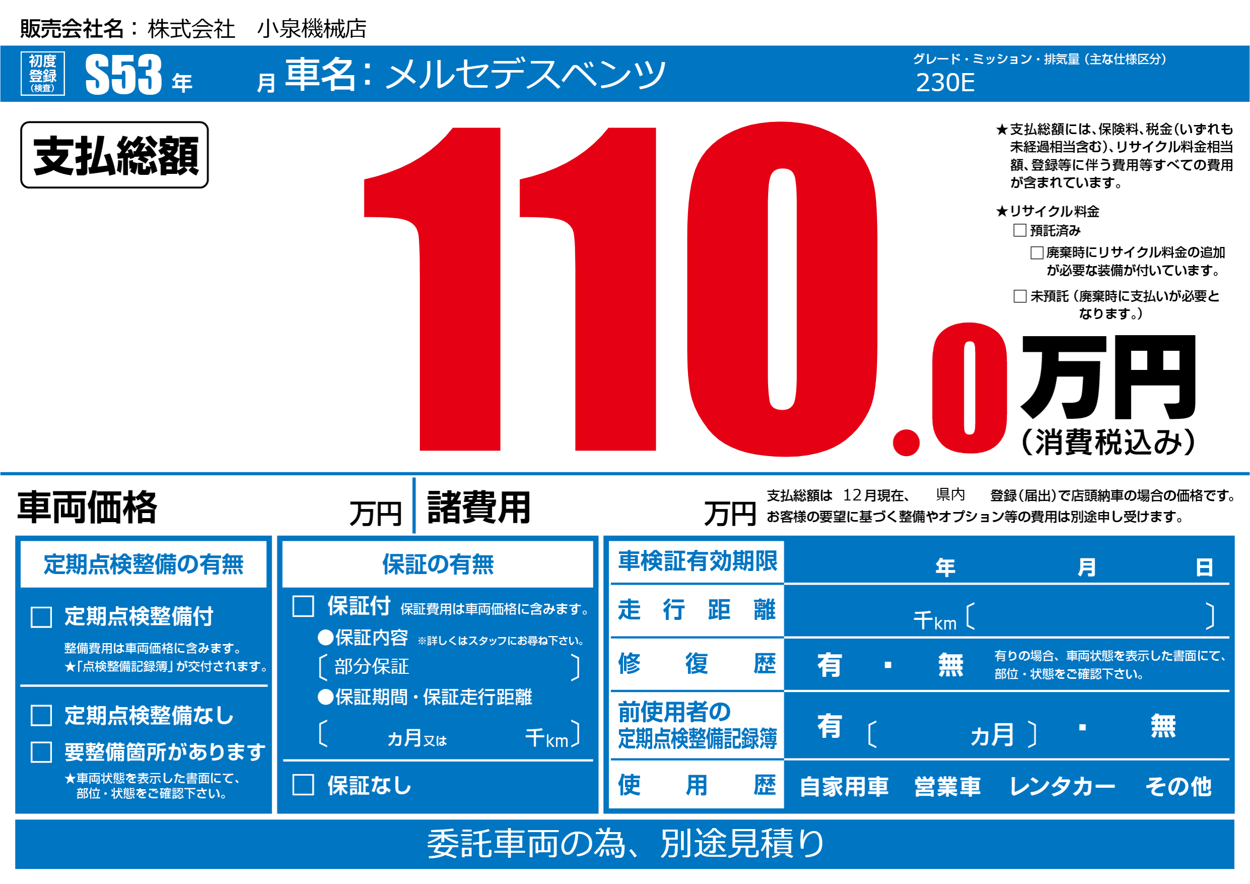 | 車検制限 | - 年 - 月 - 日 | ||