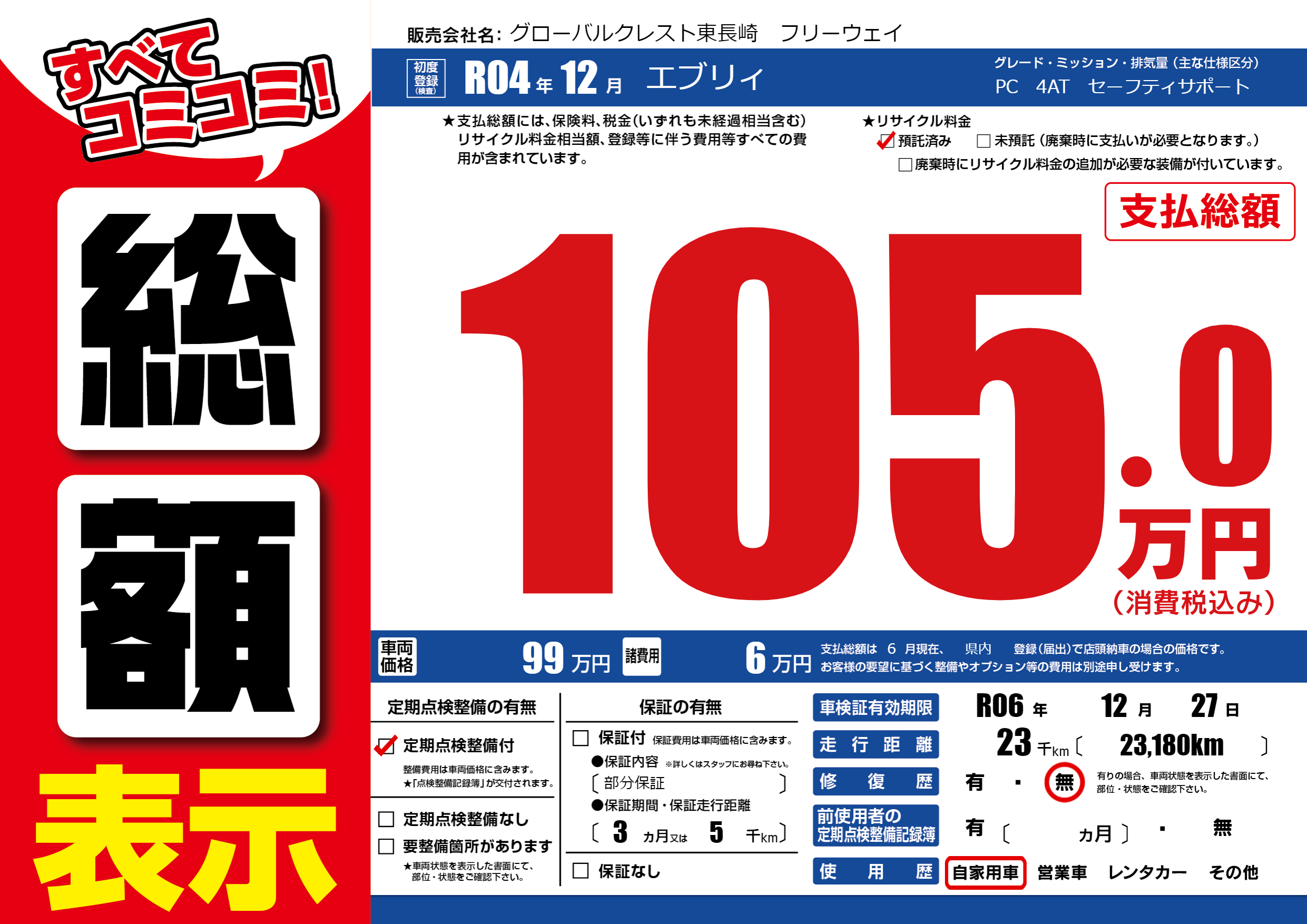 なし | 車検制限 | R06年12月27月 |