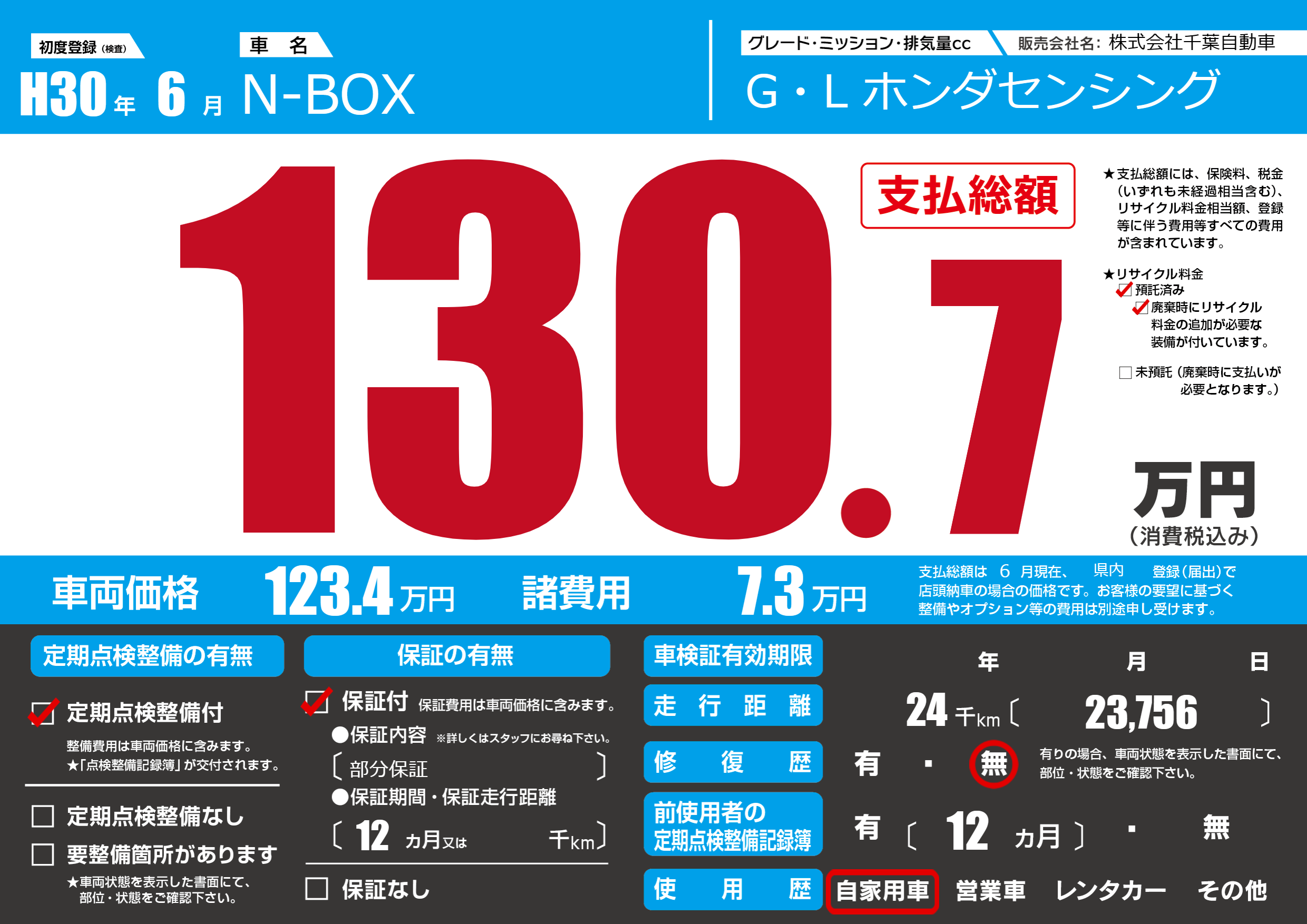| 車名 | N-BOX | グレード ミッション 排気量 |