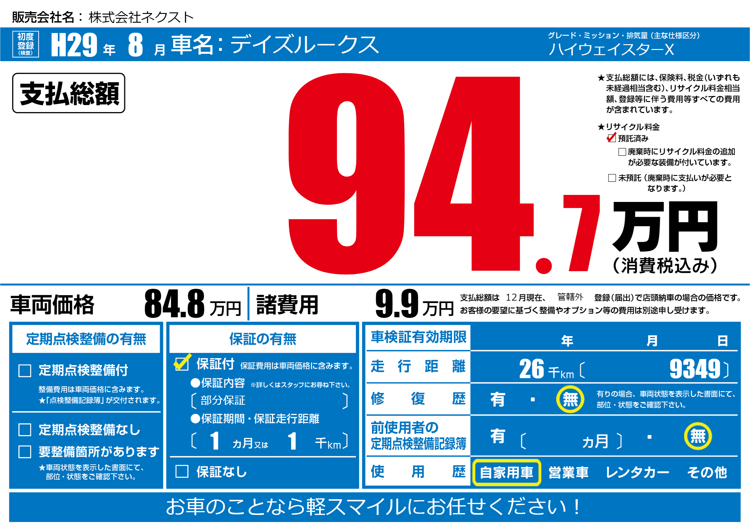 | 車名 | デイズルークス | グレード ミッション 排気量 |