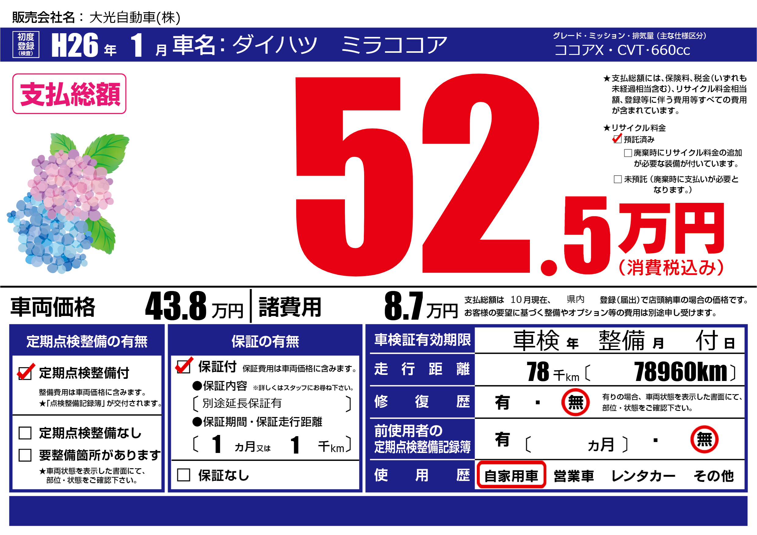 定期点検整備 | 定期点検整備あり |