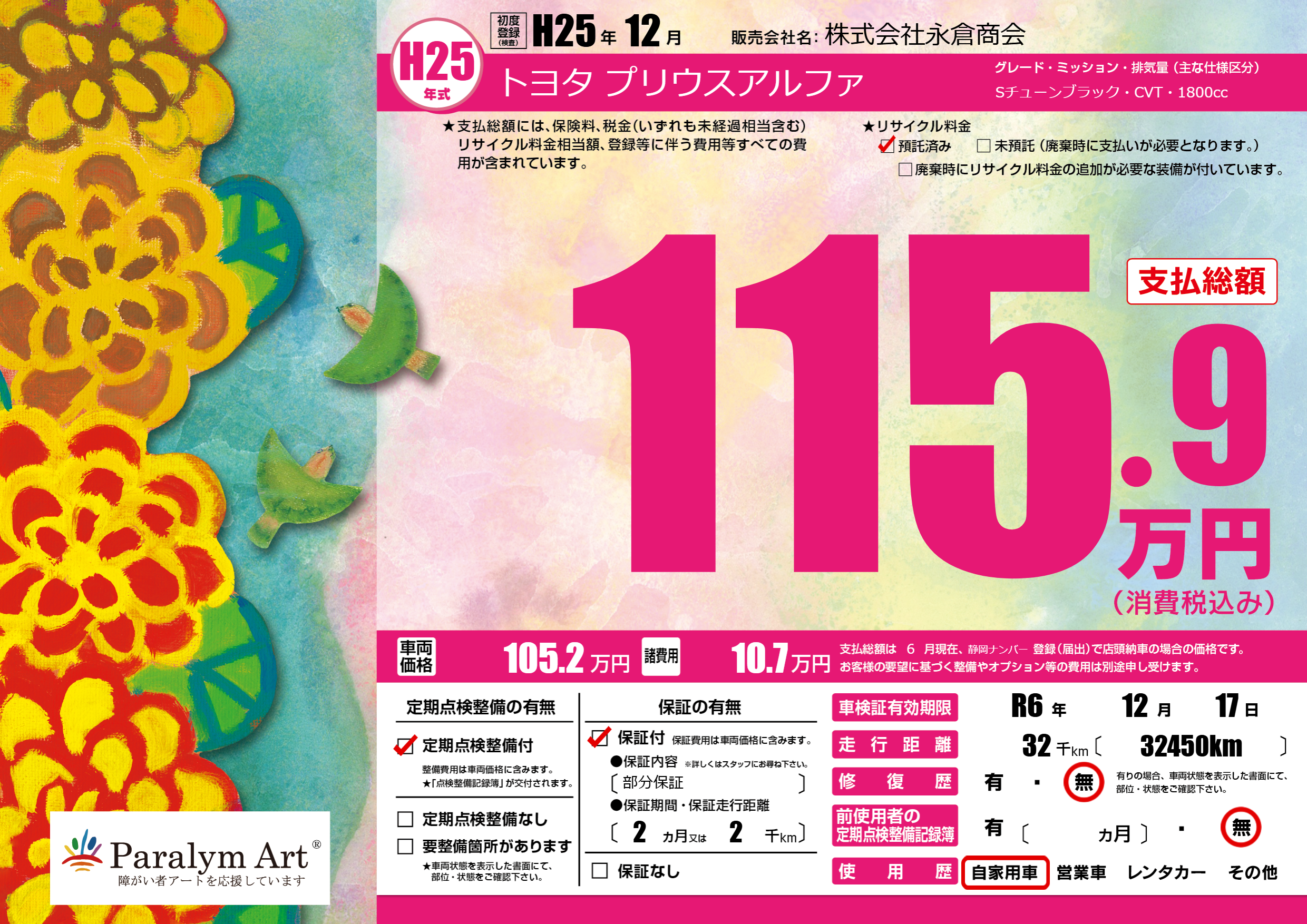 | 車名 | トヨタ プリウスアルファ | グレード ミッション 排気量 |