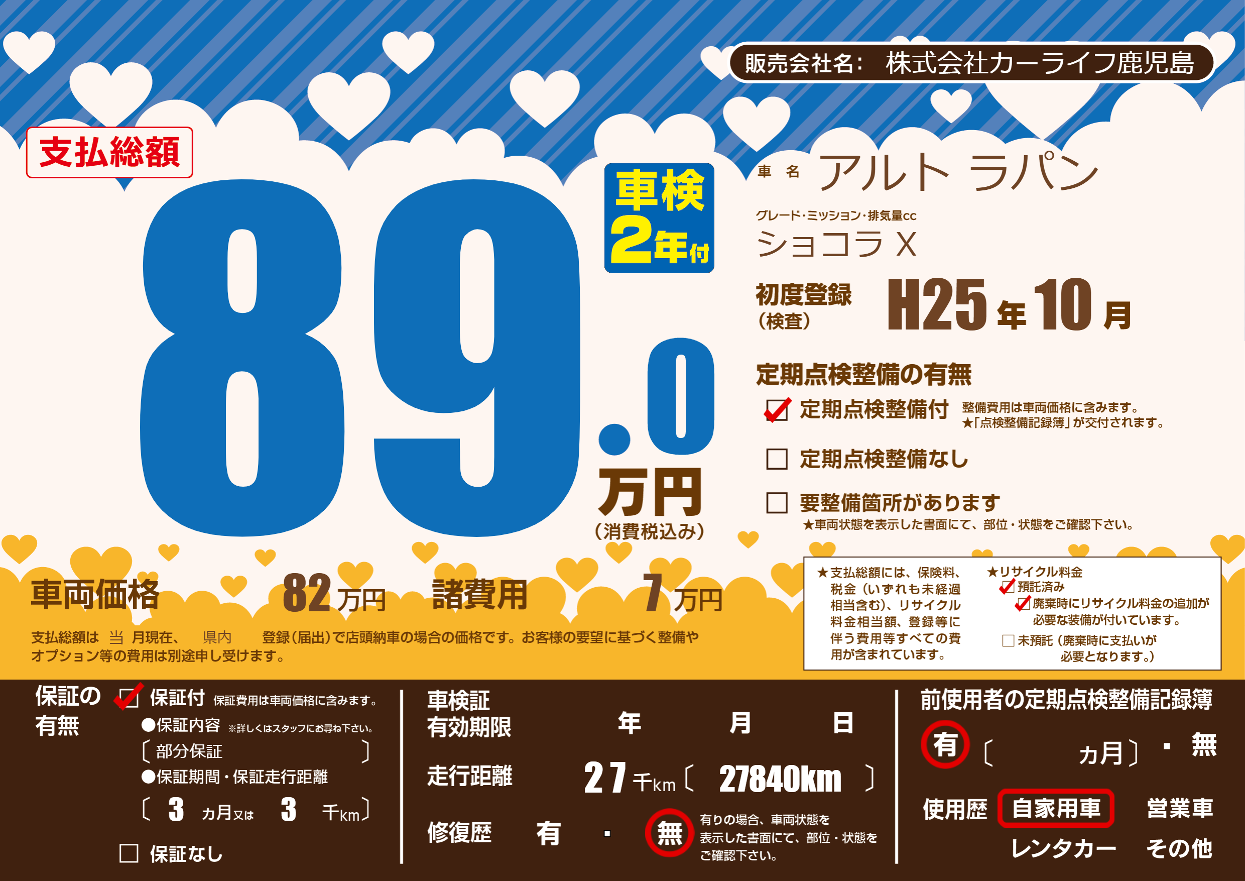 | 定期点検整備 | 定期点検整備あり | ||
