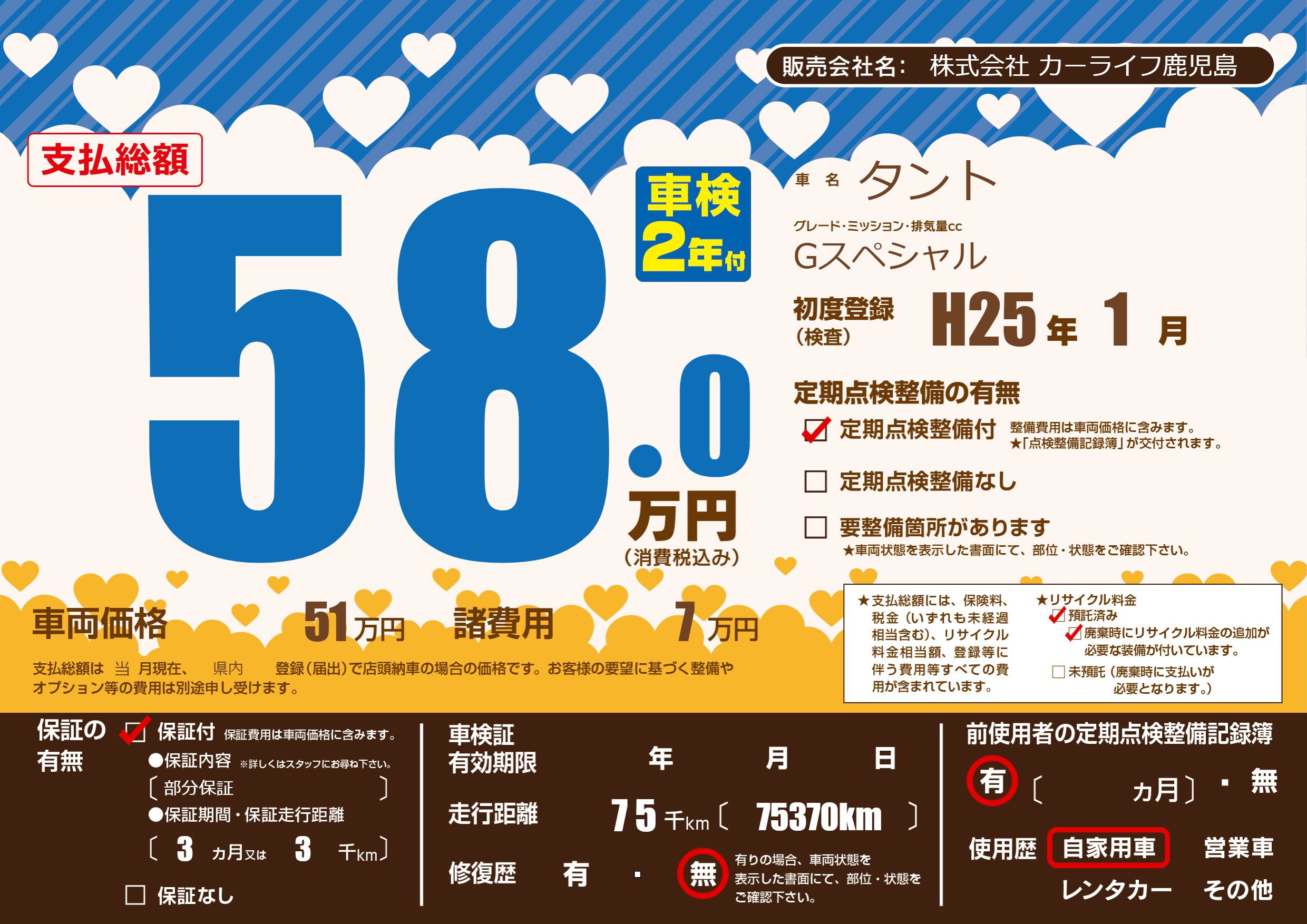 | 走行キロ | 0.7万km | 初年度登録 | H25年1月 |