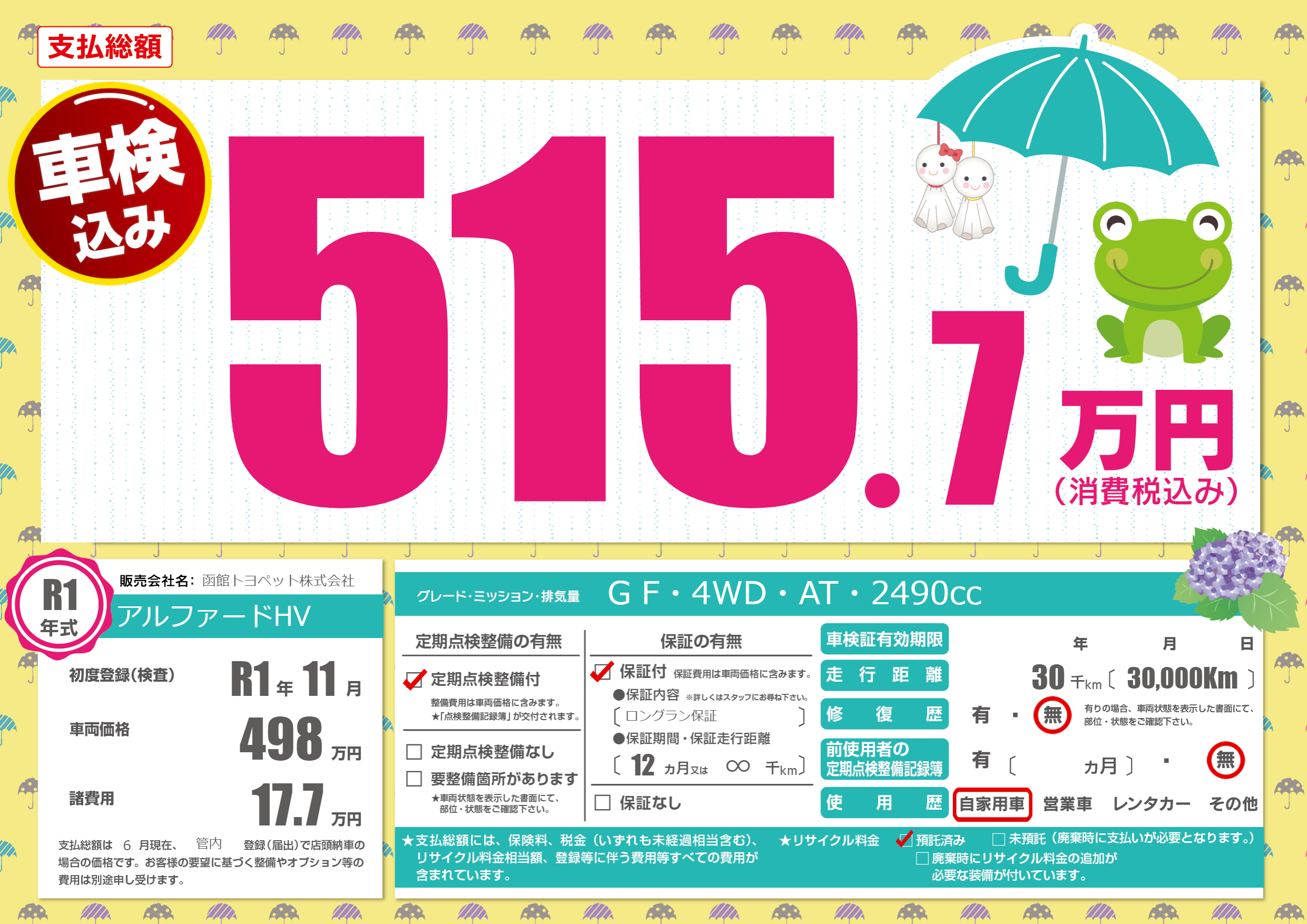 | 走行キロ | 3万km | ||