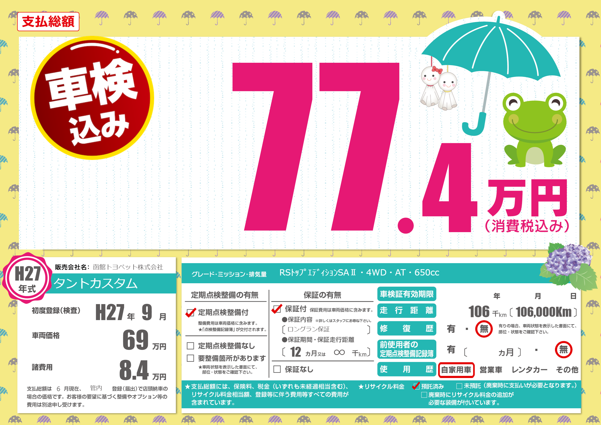 | 車名 | タントカスタム | グレード ミッション 排気量 |