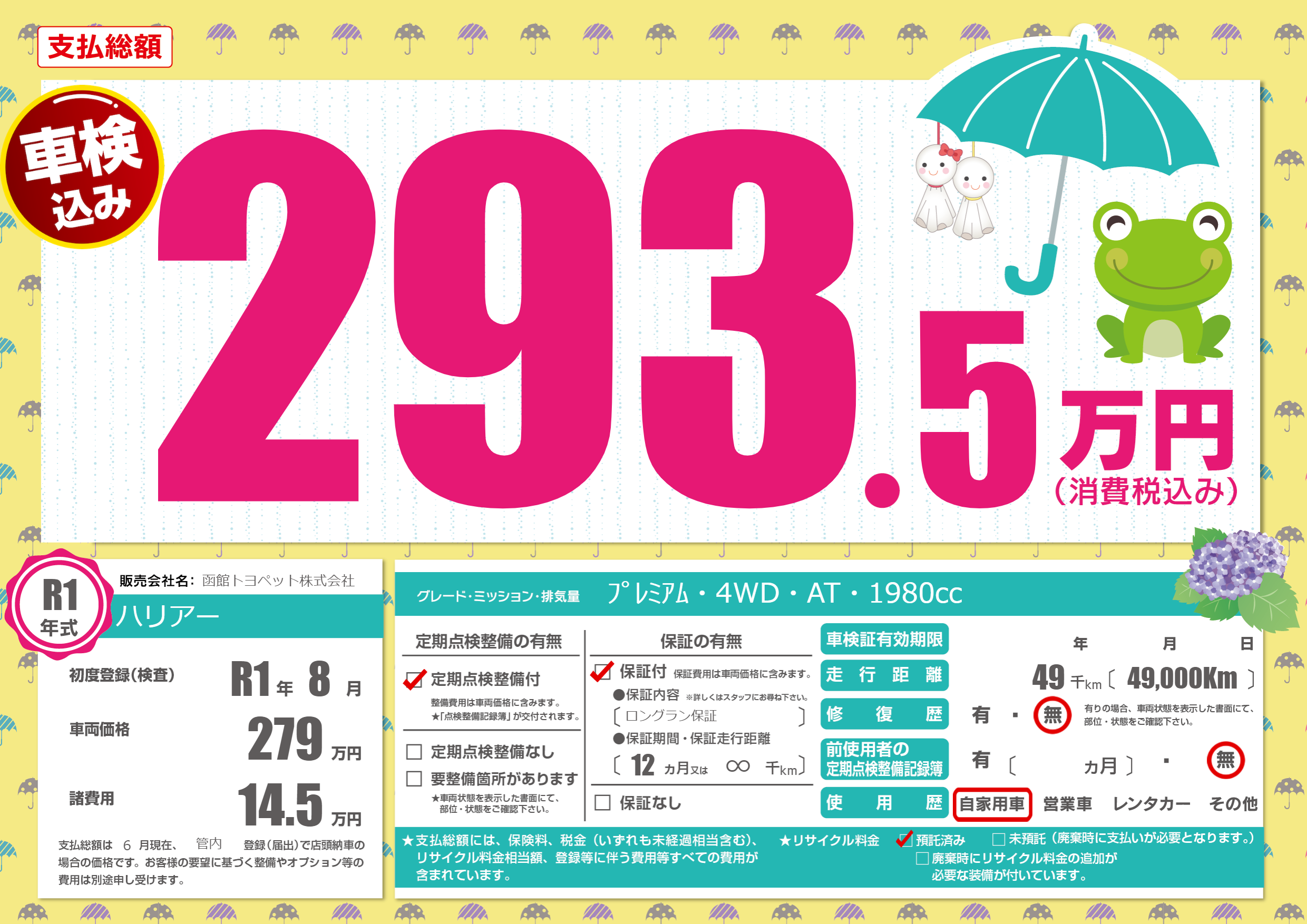 | 車名 | ハリアー | グレード ミッション 排気量 |