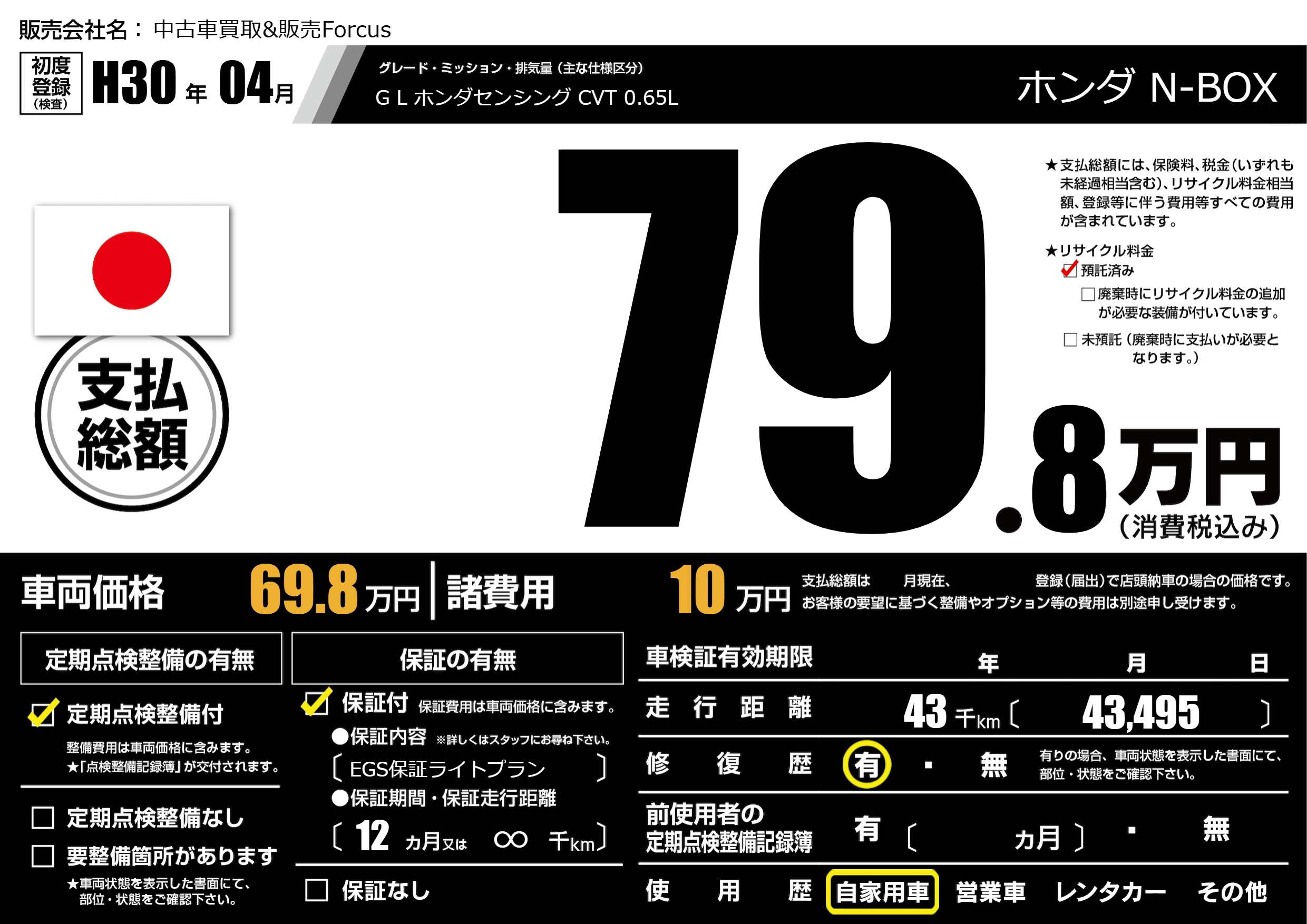 保証付き 保証内容(EGS保証ライトプラン) 12ヶ月または(∞)千kmまで |