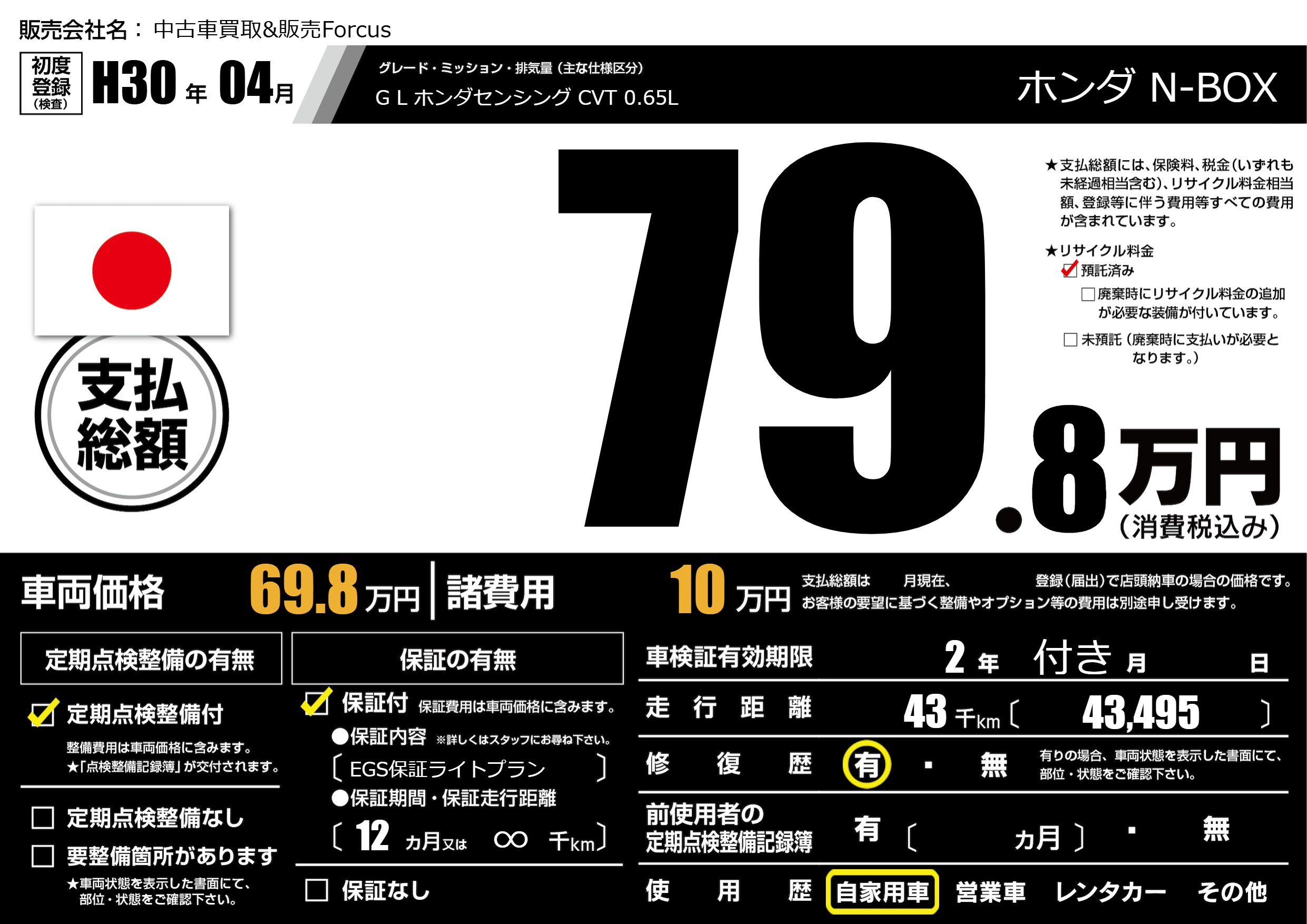 保証付き 保証内容(EGS保証ライトプラン) 12ヶ月または(∞)千kmまで |