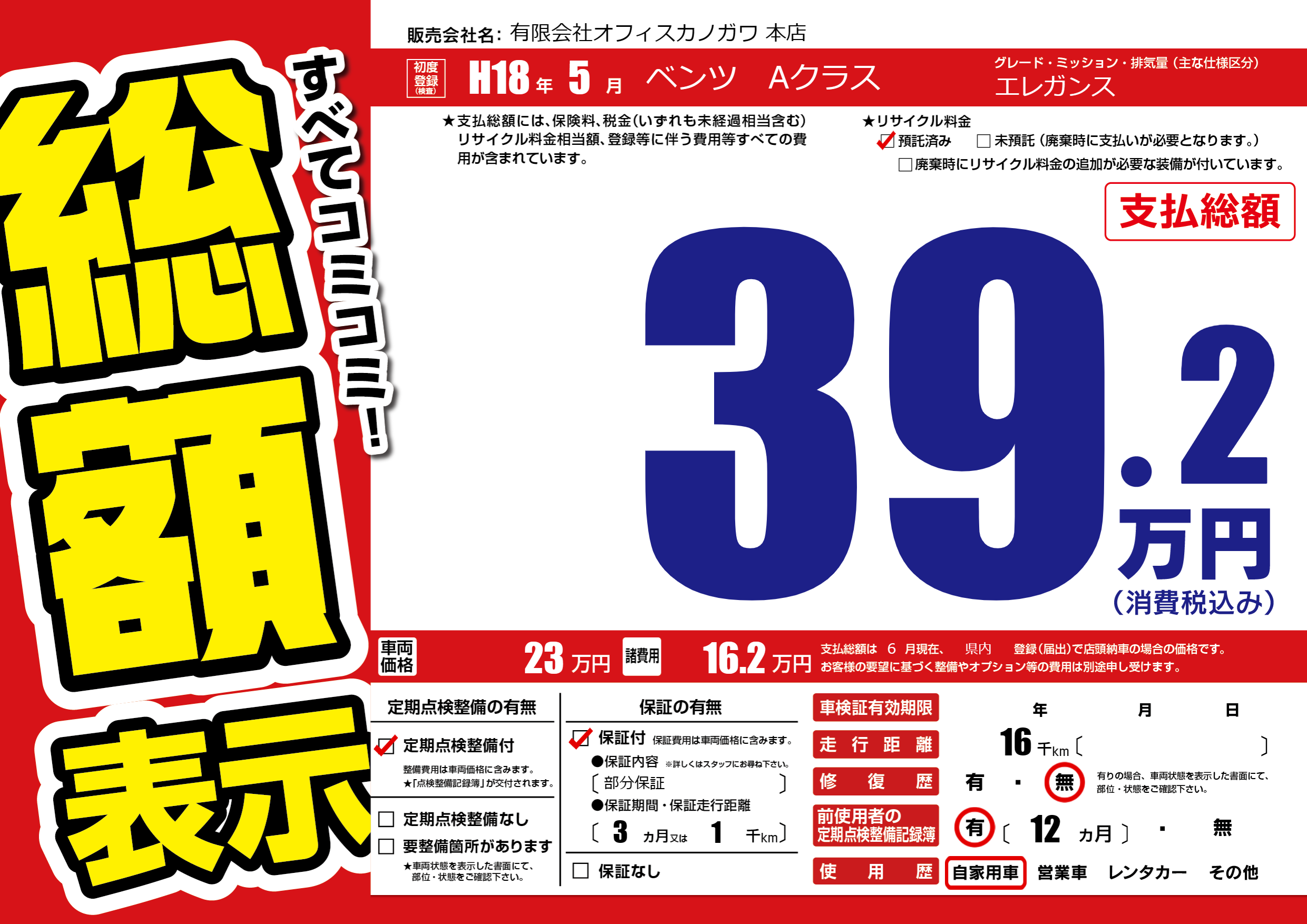 | 定期点検整備 | 定期点検整備あり | ||