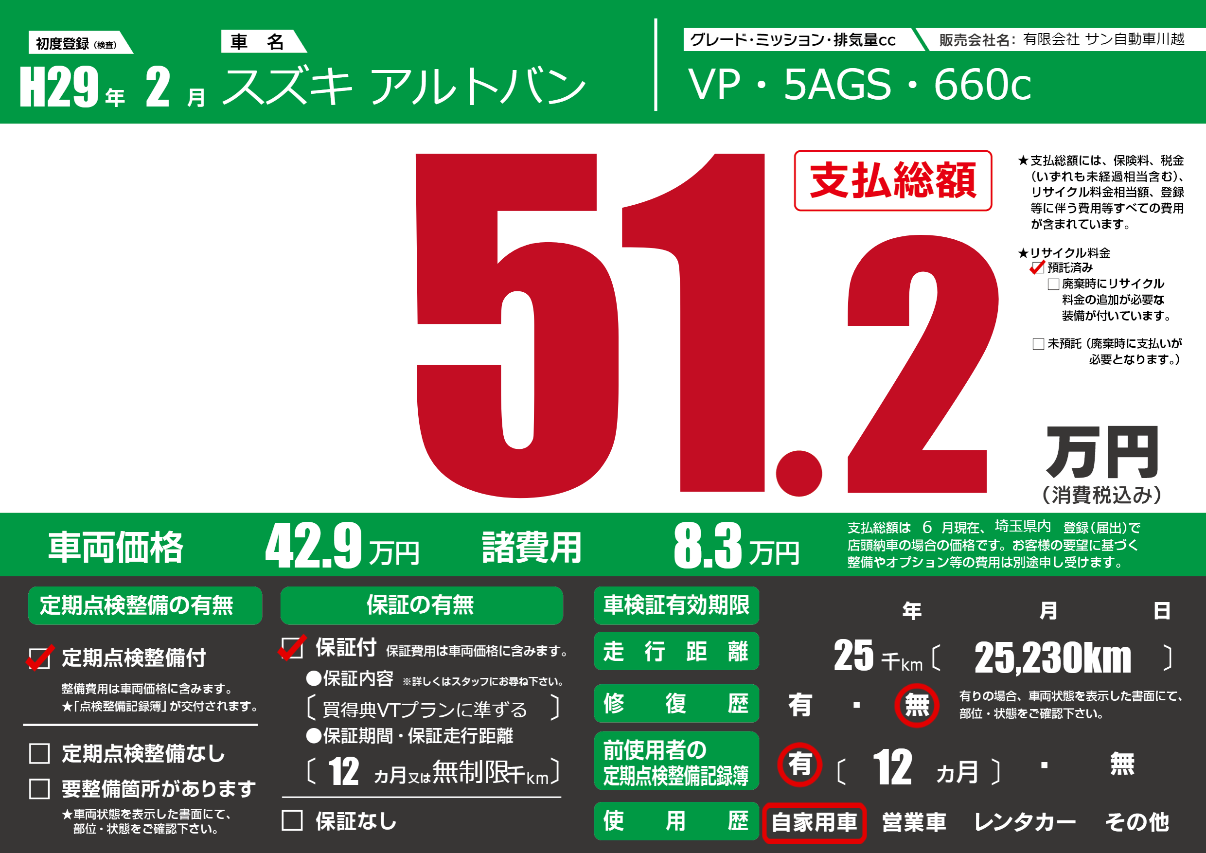 保証付き 保証内容(買得典VTプランに準ずる) 12ヶ月または無制限千km |