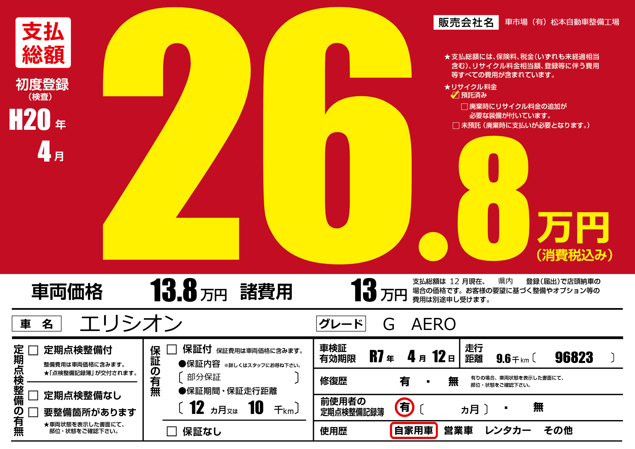 | 車検制限 | R7年 4月 12日 | ||