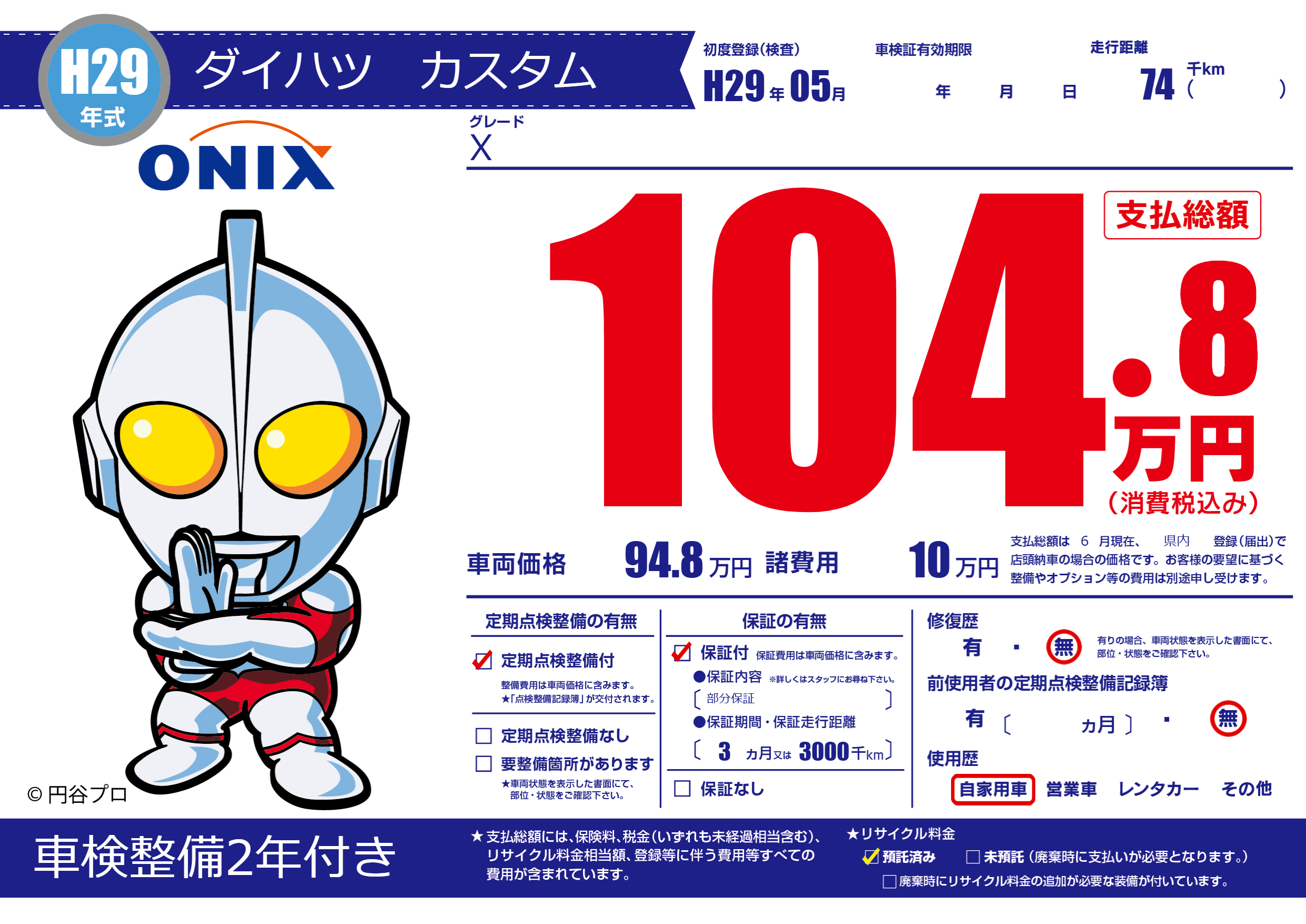 | 走行キロ | 7.4万km | 初年度登録 | H29年05月 |