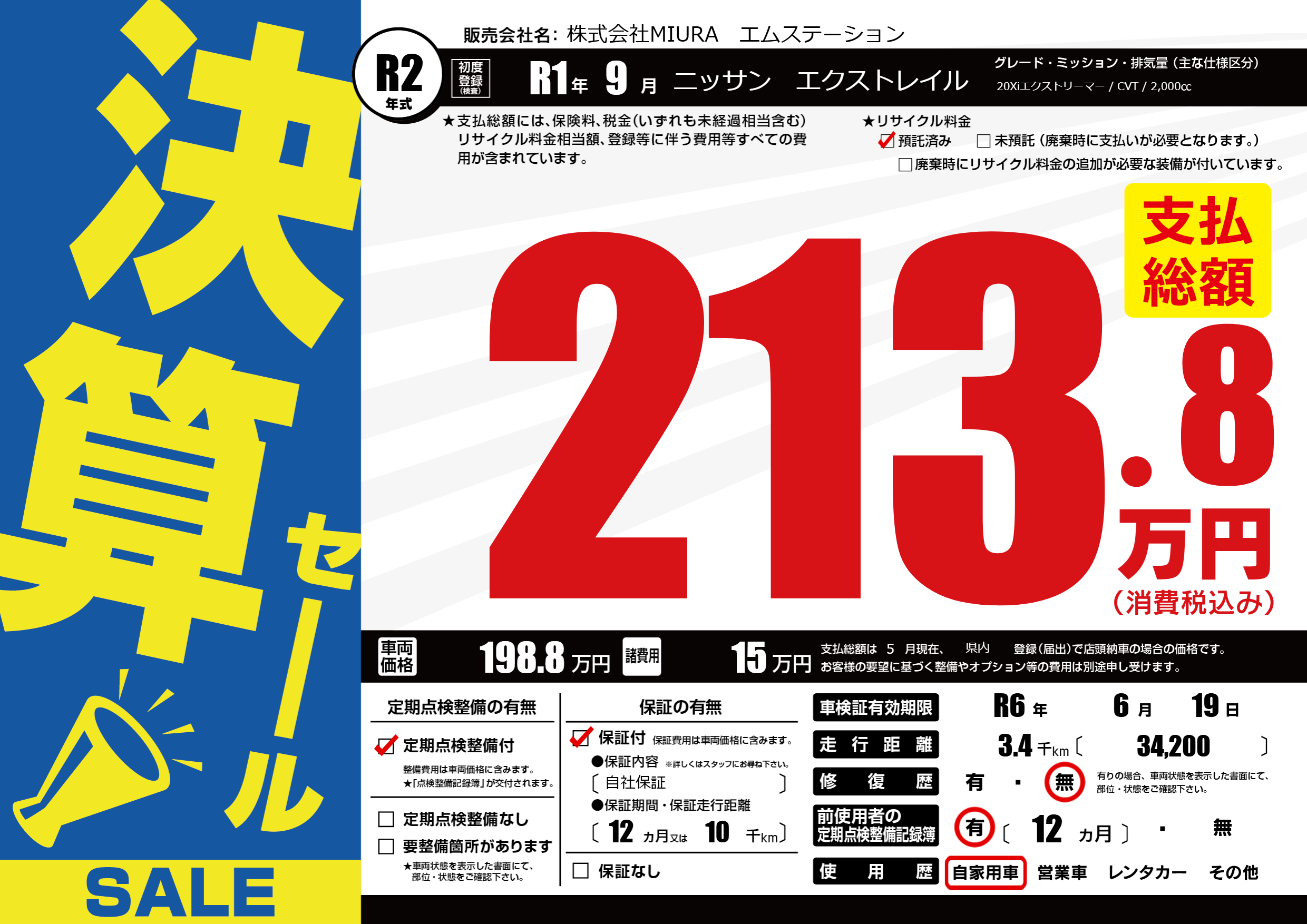 なし | 車検制限 | R6年6月19月 |